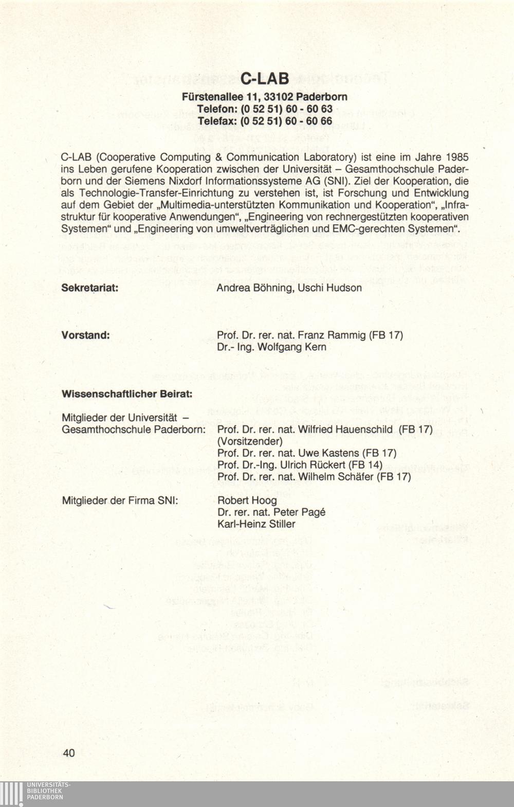 Personal- und Vorlesungsverzeichnis für die Universität Paderborn