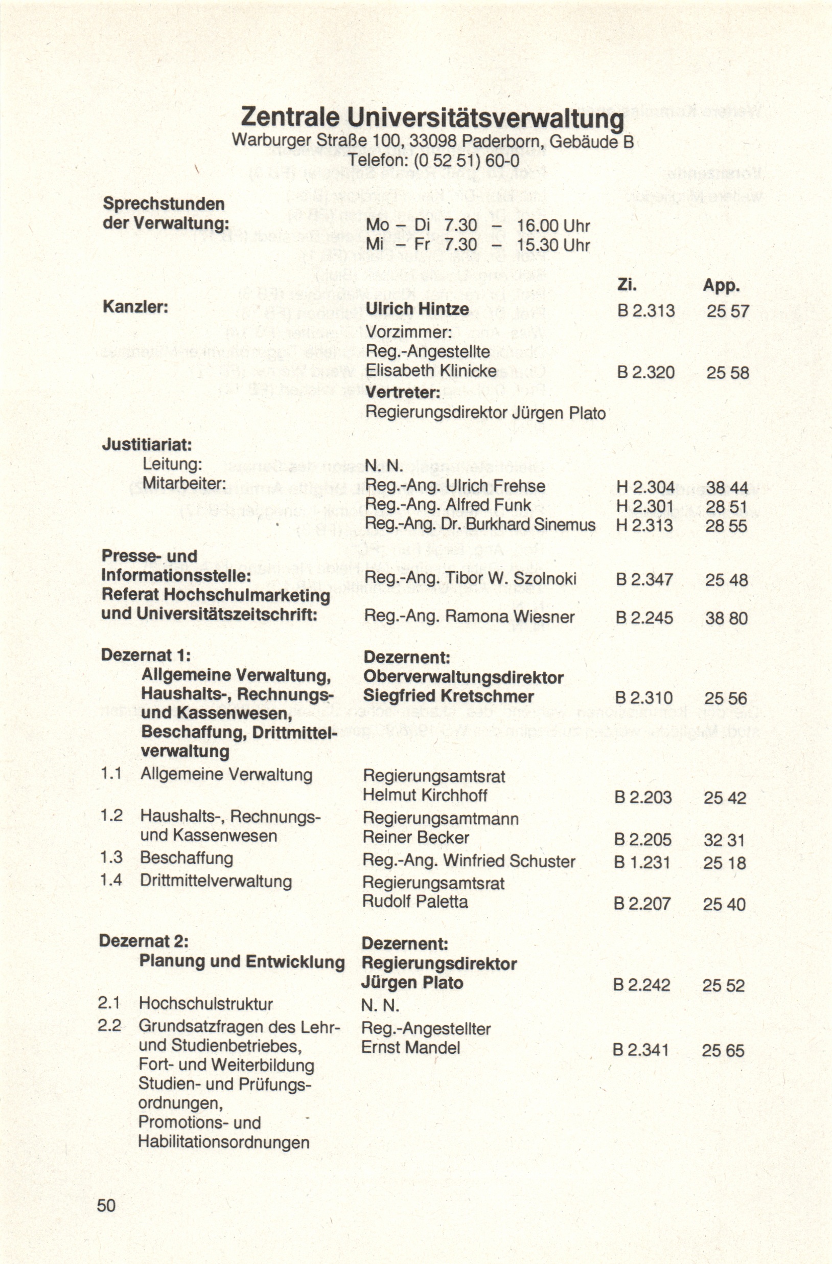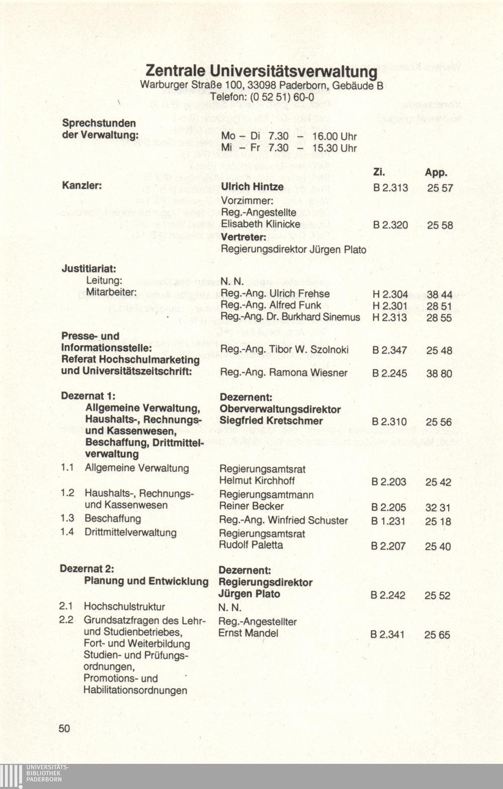 Personal- und Vorlesungsverzeichnis für die Universität Paderborn