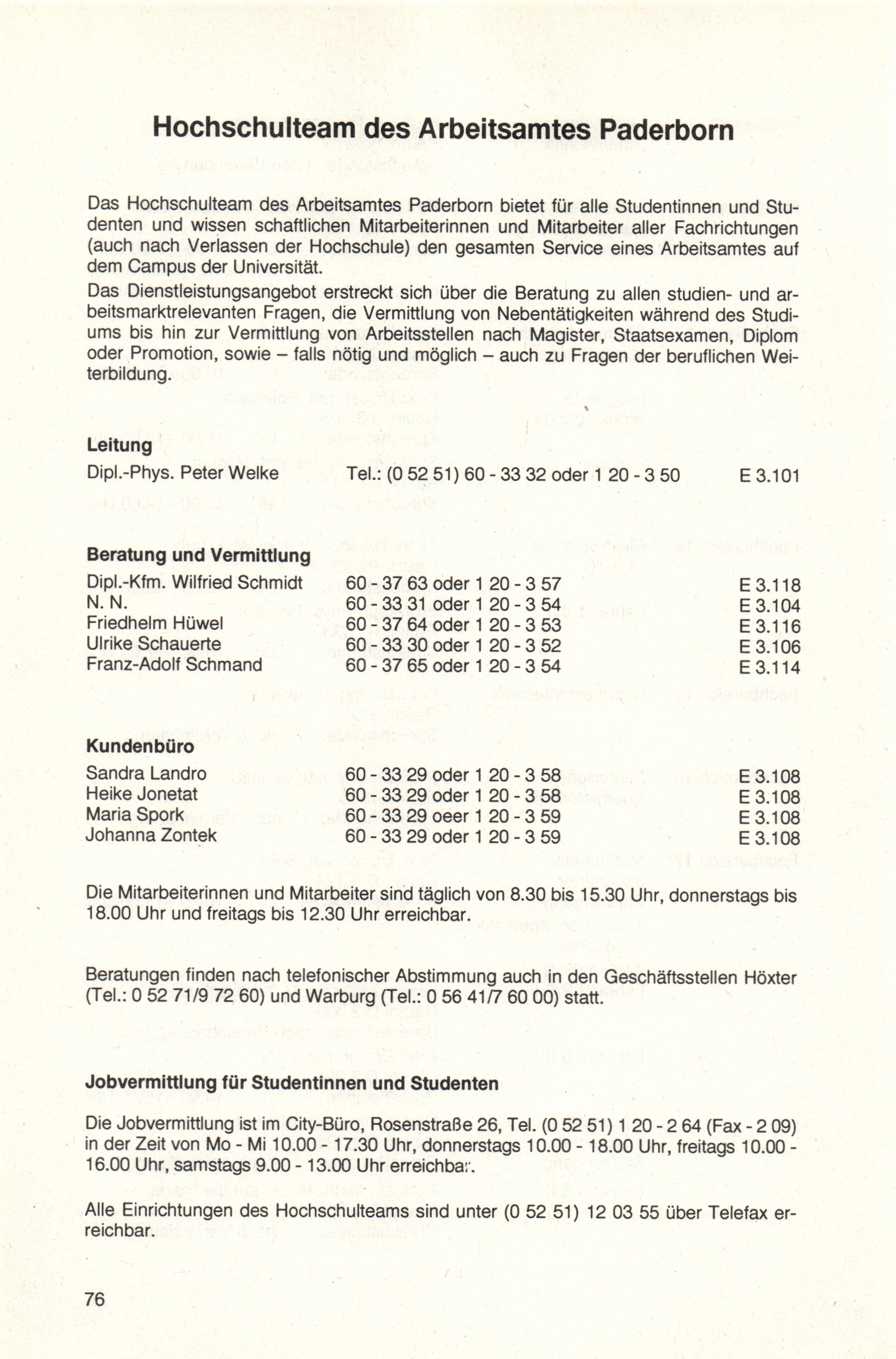 Hochschulteam und Berufsberatung der Arbeitsämter