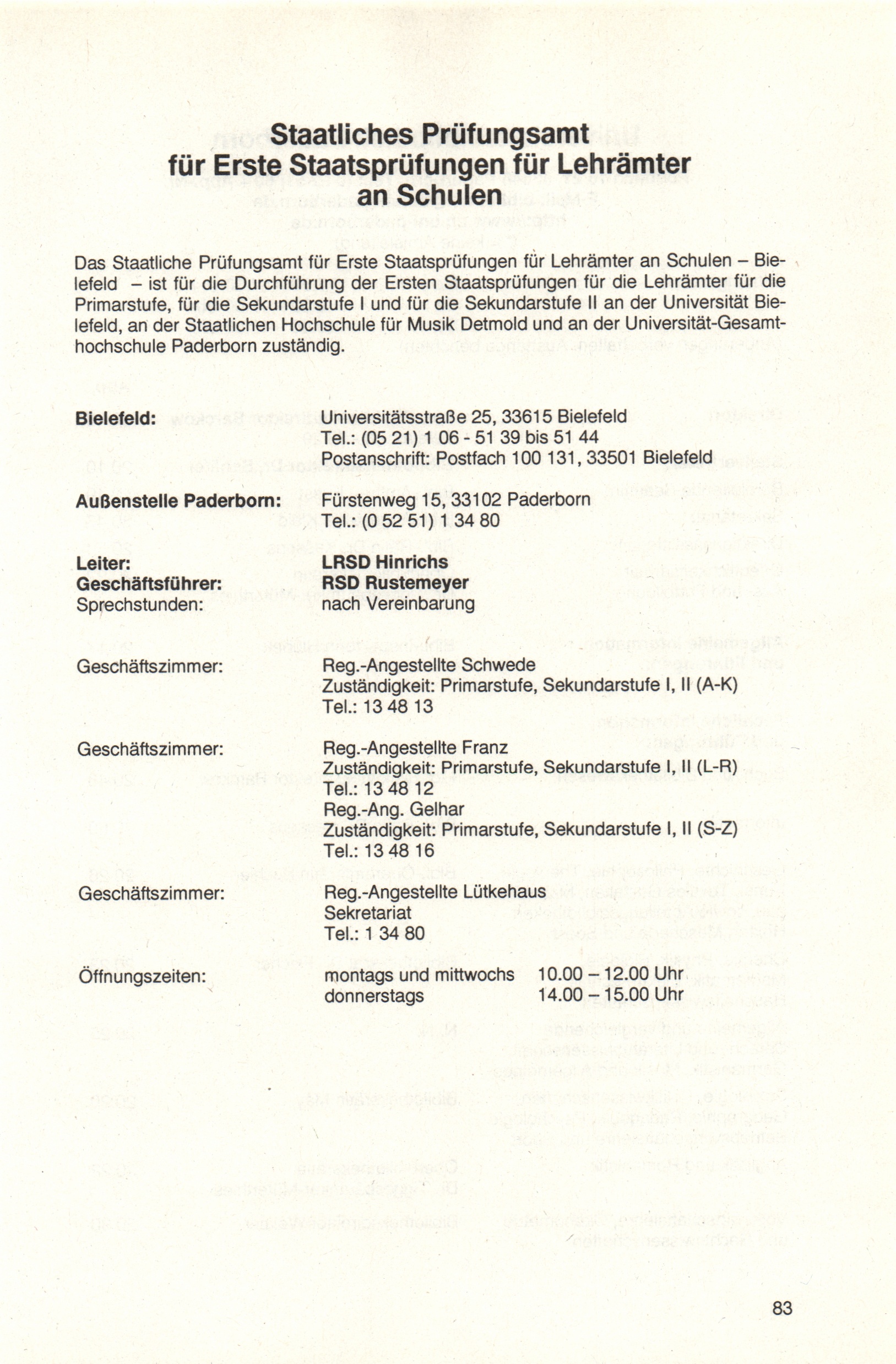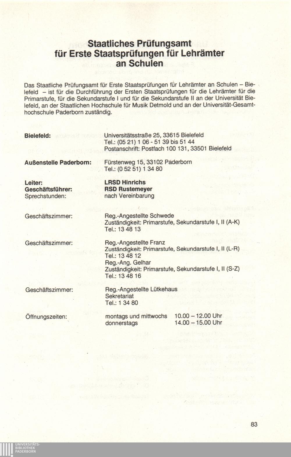 Personal- und Vorlesungsverzeichnis für die Universität Paderborn