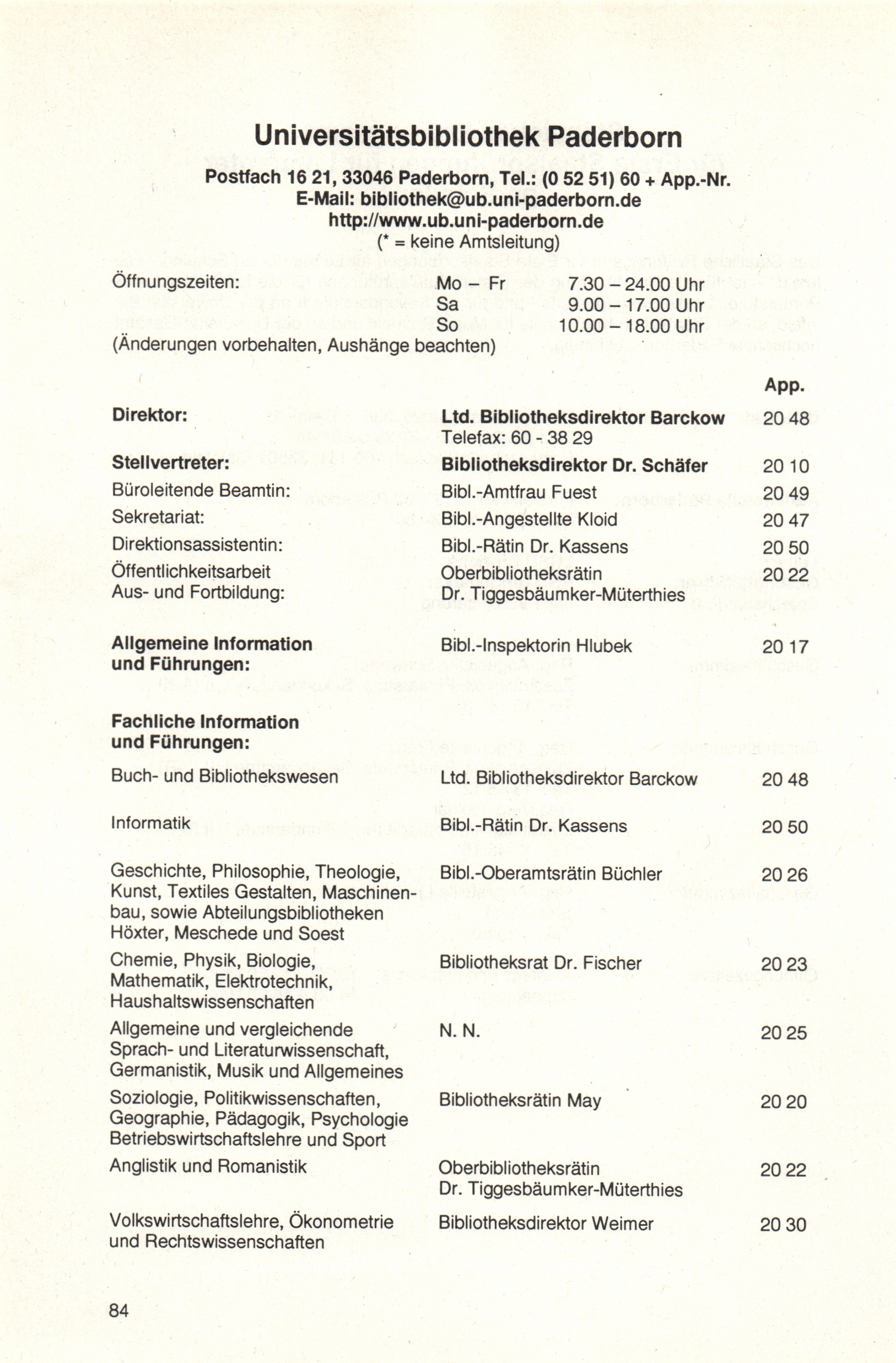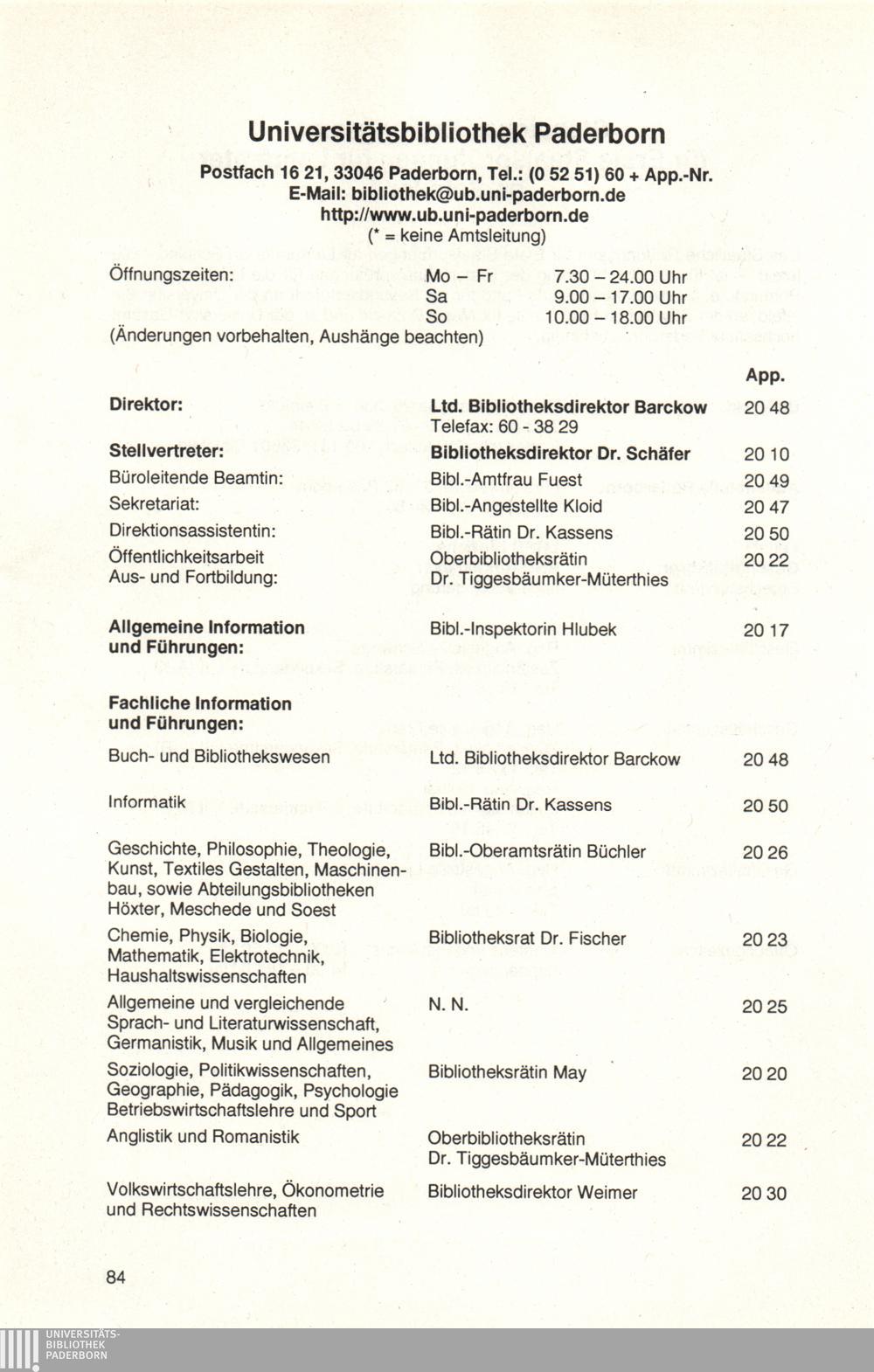 Personal- und Vorlesungsverzeichnis für die Universität Paderborn