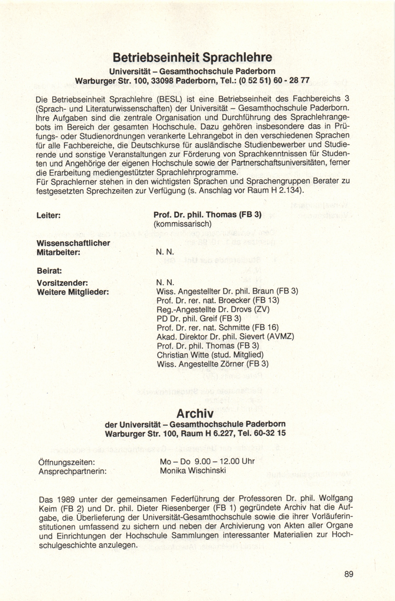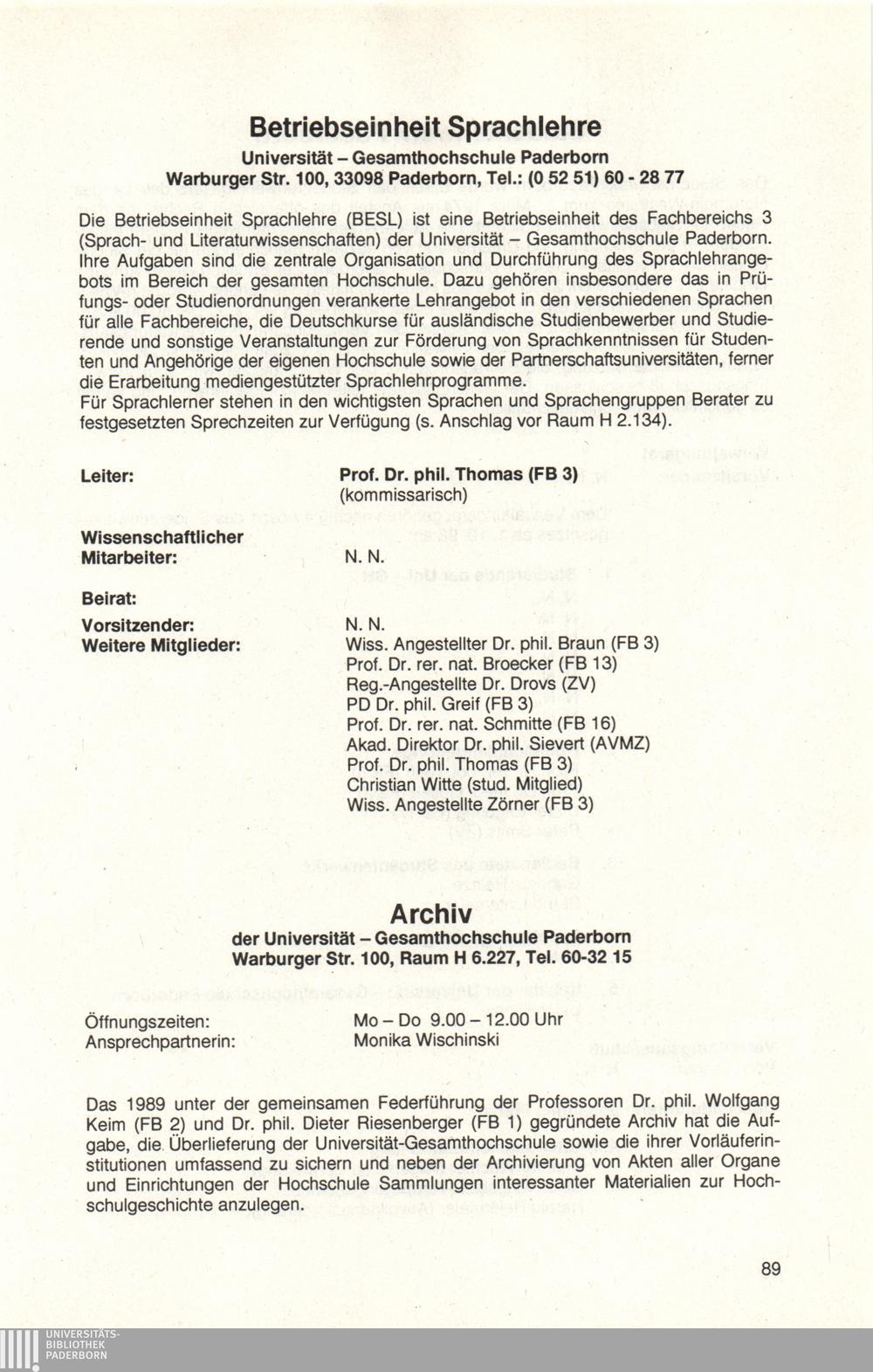 Personal- und Vorlesungsverzeichnis für die Universität Paderborn