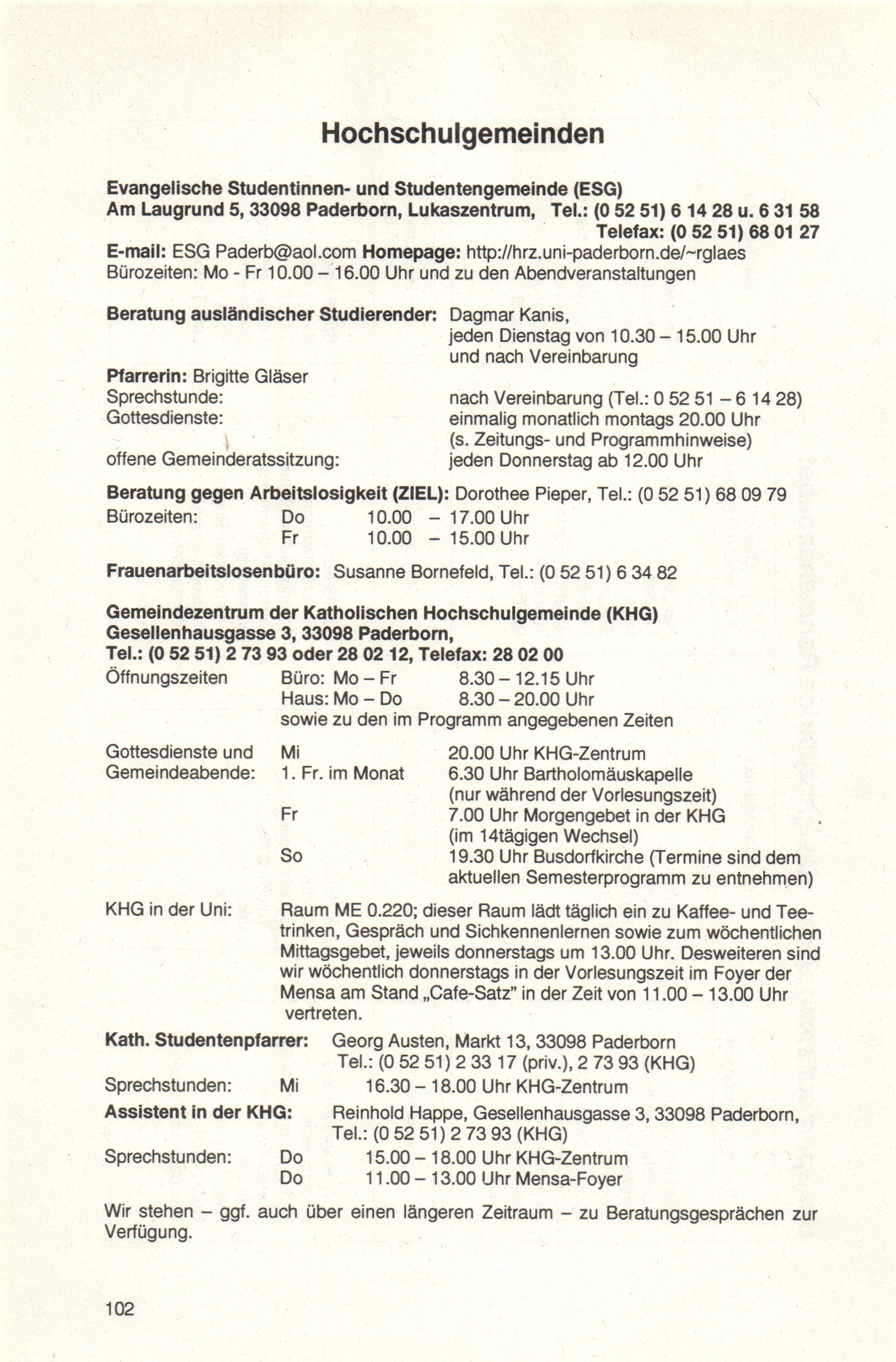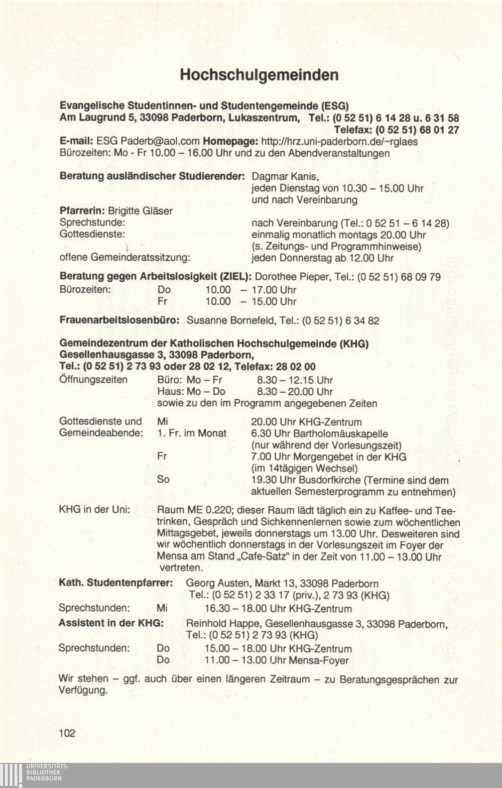 Personal- und Vorlesungsverzeichnis für die Universität Paderborn