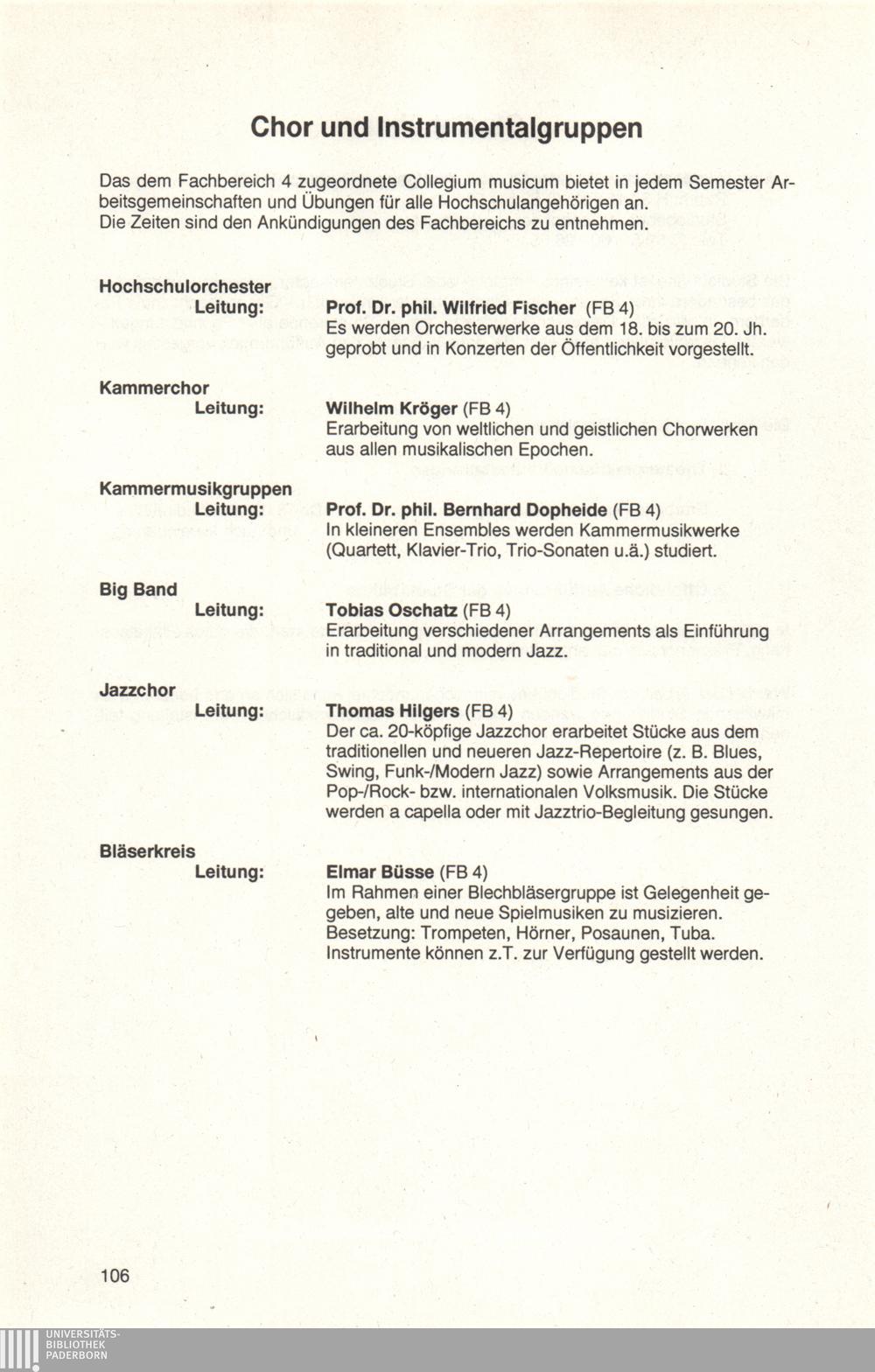 Personal- und Vorlesungsverzeichnis für die Universität Paderborn