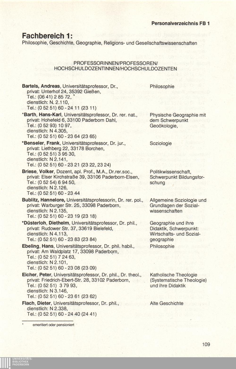 Personal- und Vorlesungsverzeichnis für die Universität Paderborn