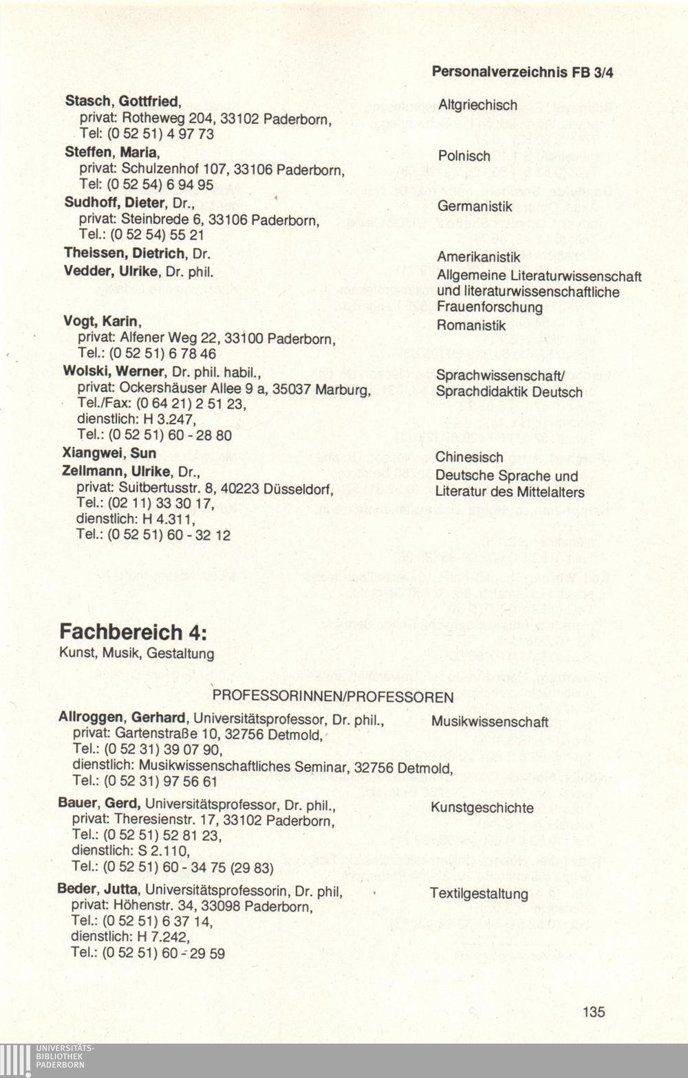 Personal- und Vorlesungsverzeichnis für die Universität Paderborn