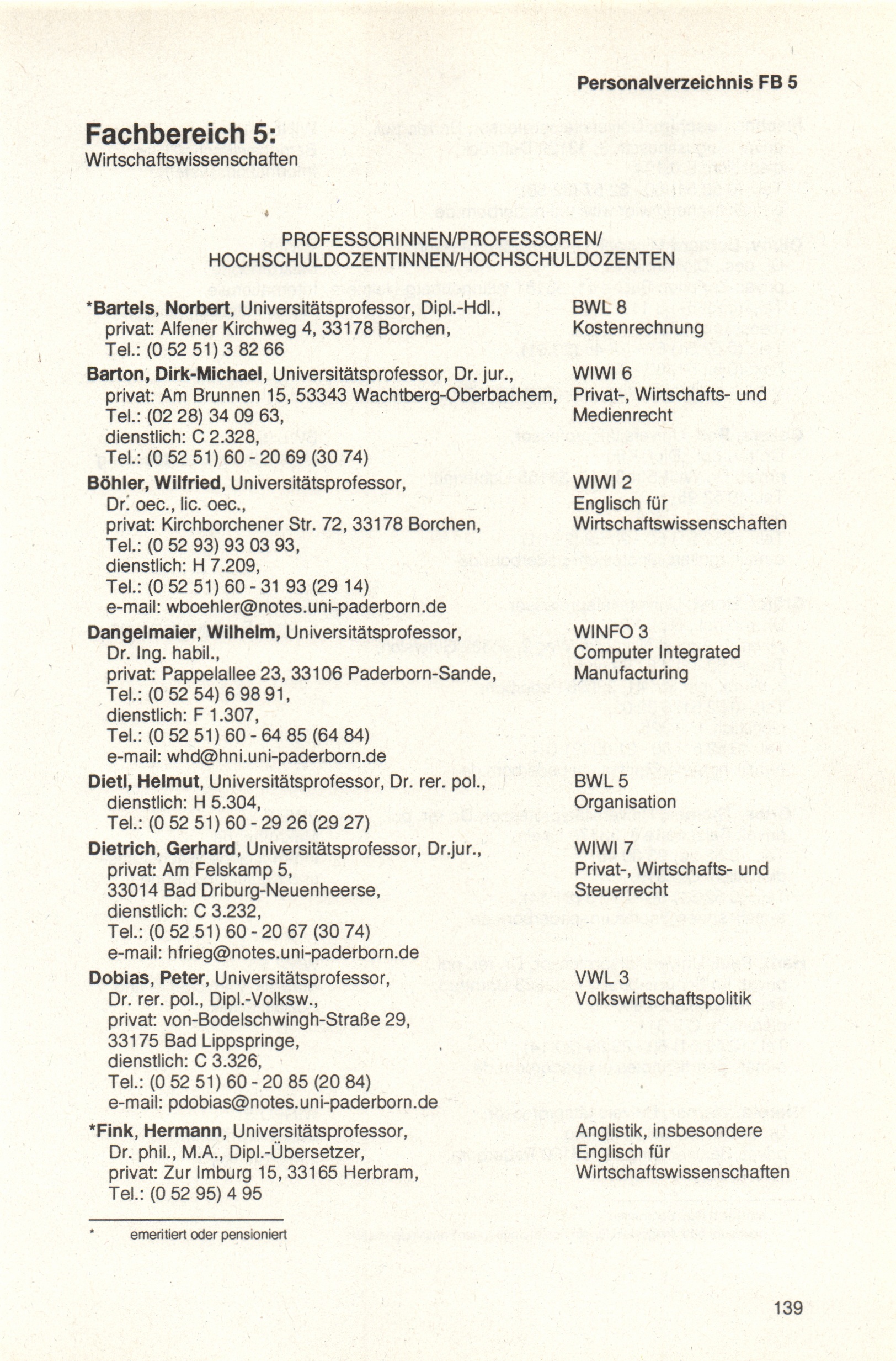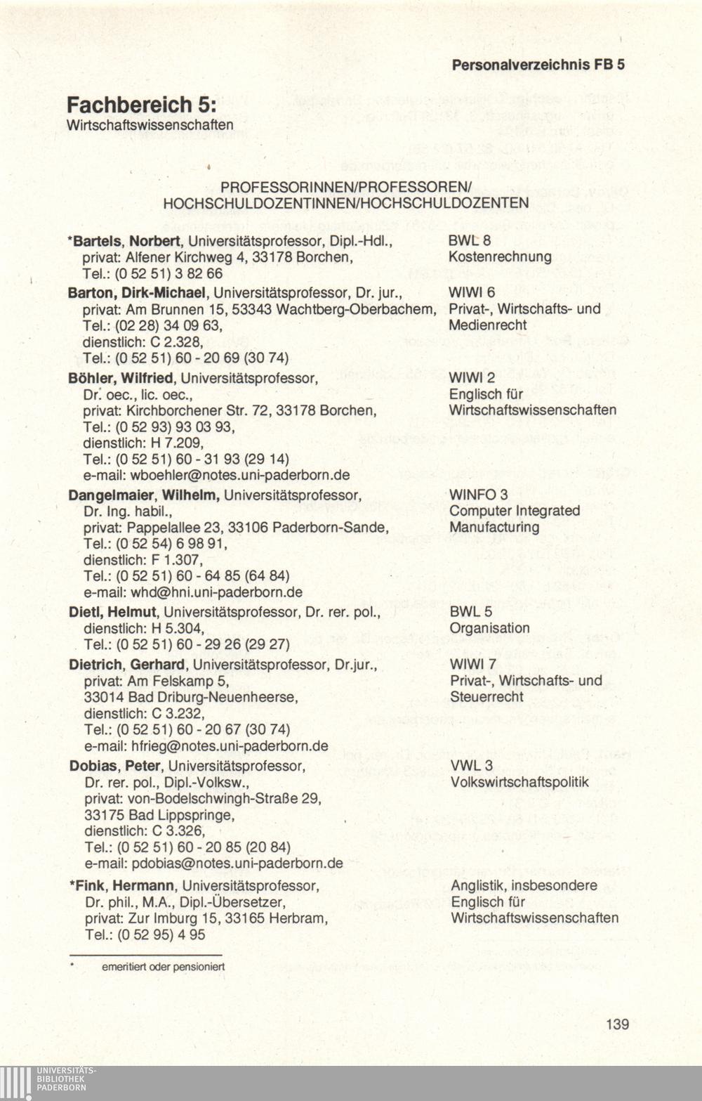 Personal- und Vorlesungsverzeichnis für die Universität Paderborn