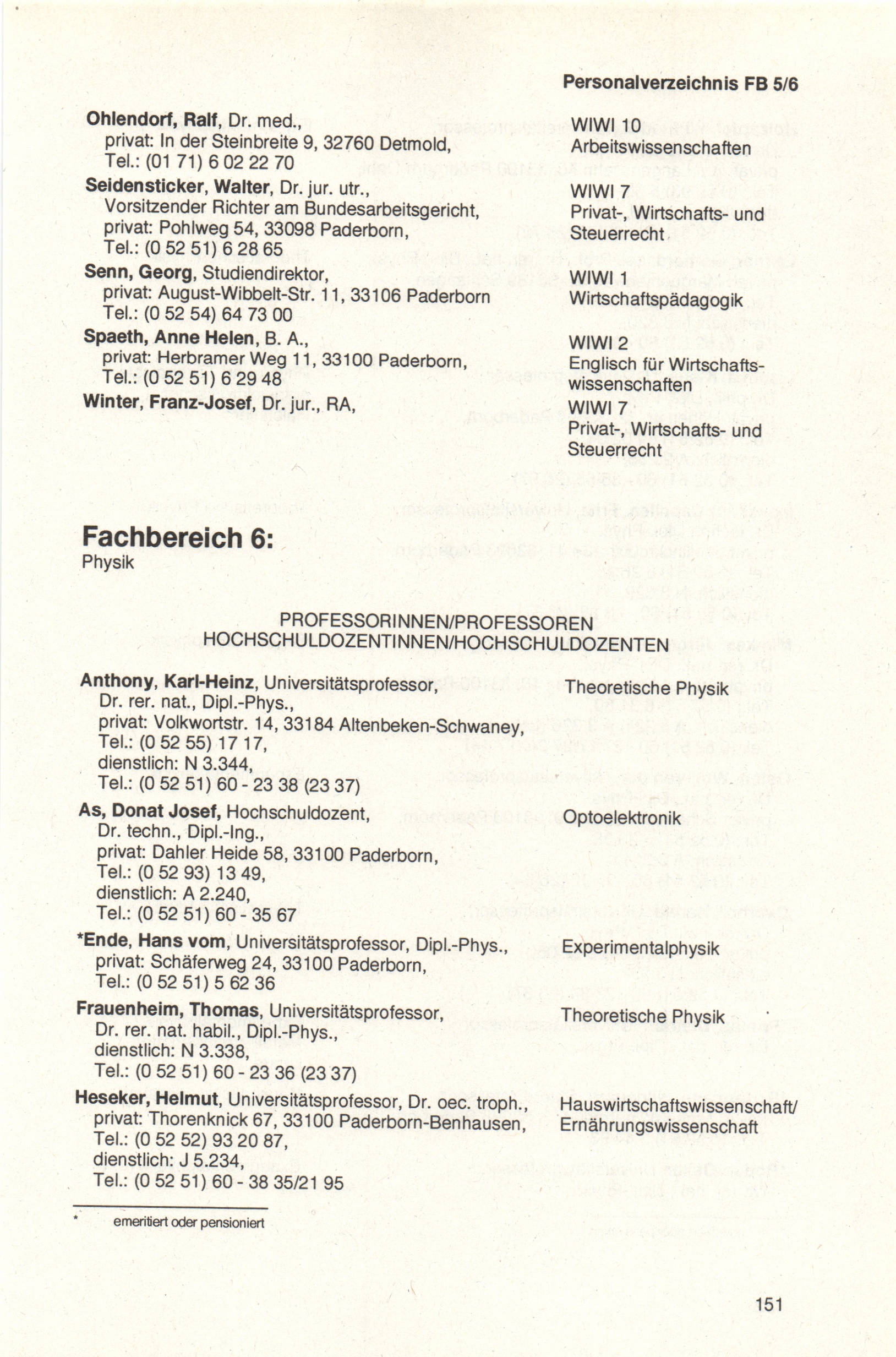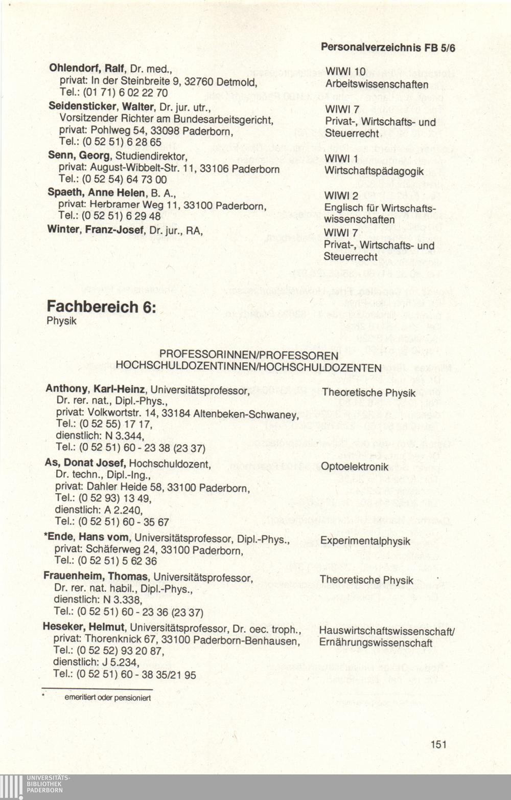 Personal- und Vorlesungsverzeichnis für die Universität Paderborn