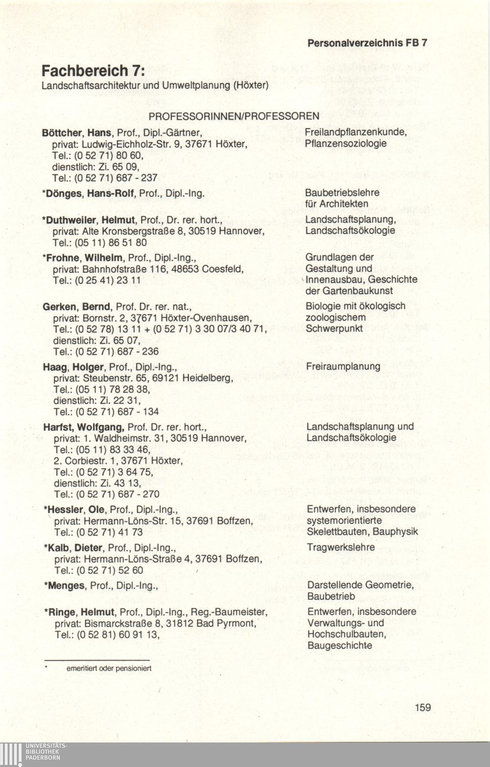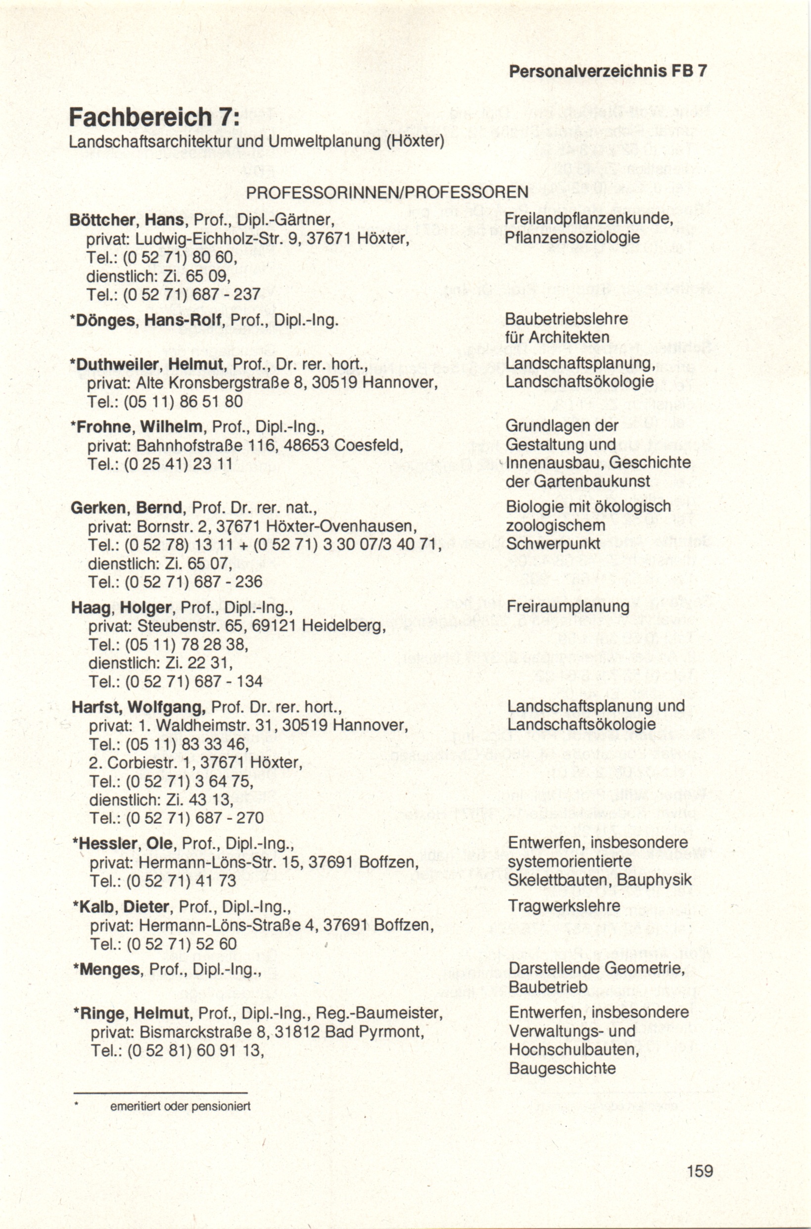 Fachbereich 7: Landschaftsarchitekutr und Umweltplanung (Höxter)