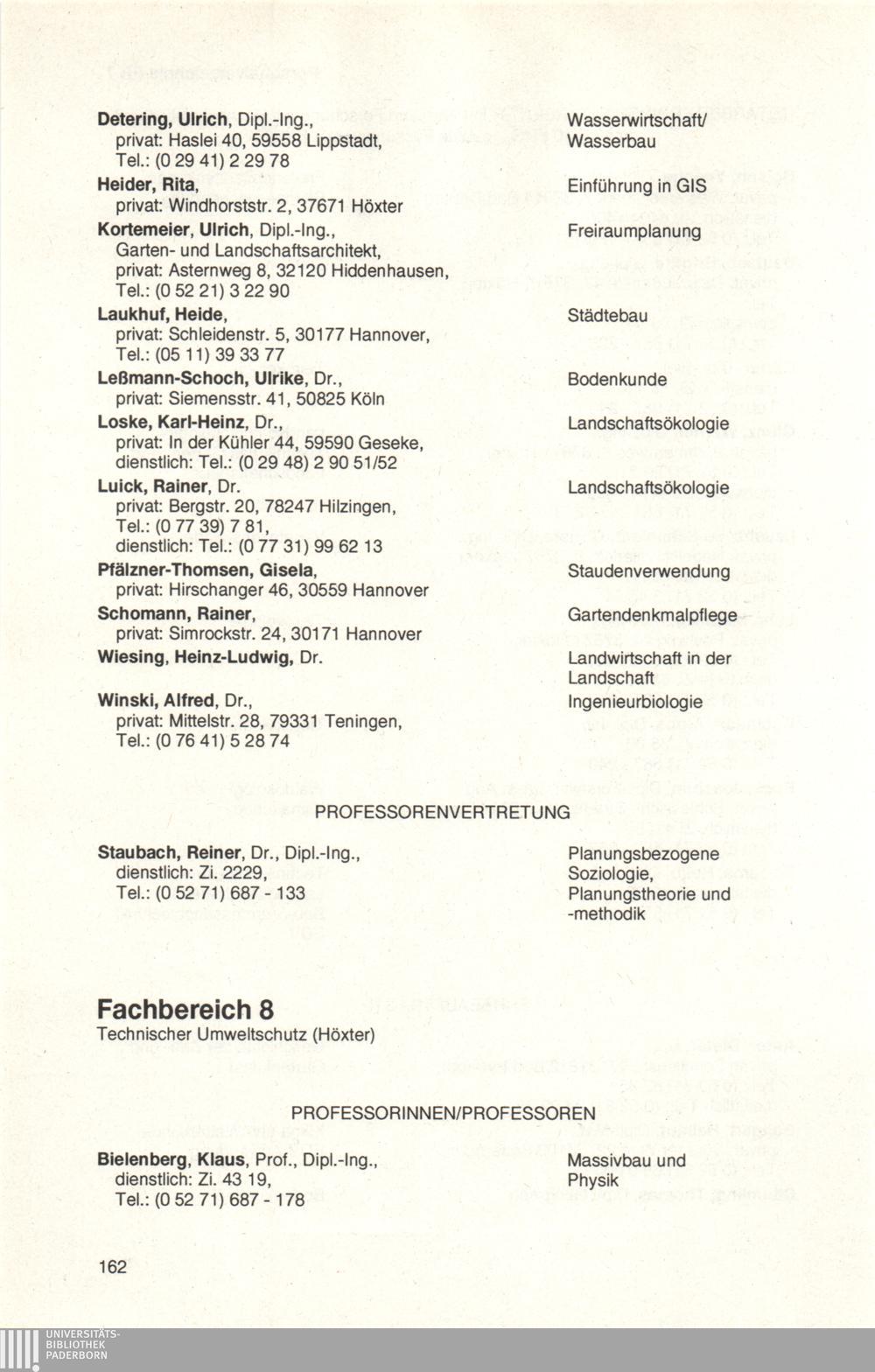 Personal- und Vorlesungsverzeichnis für die Universität Paderborn