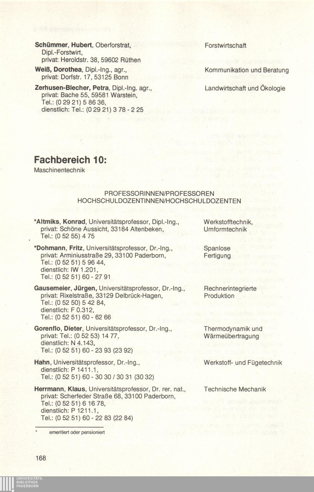 Personal- und Vorlesungsverzeichnis für die Universität Paderborn