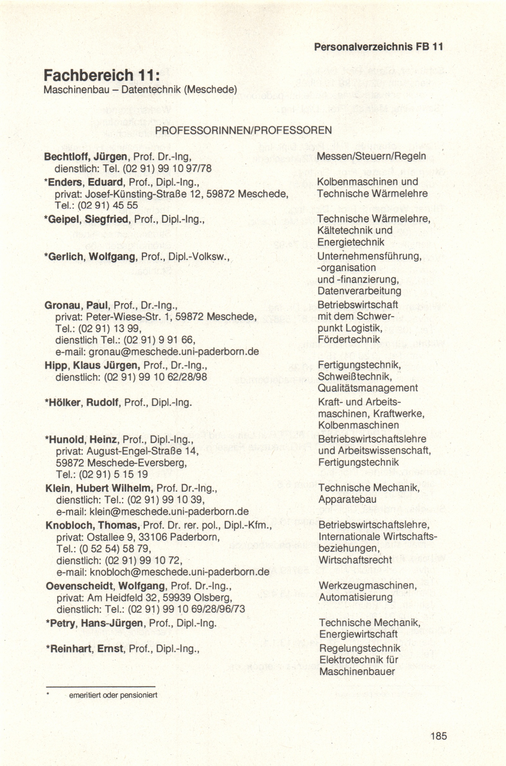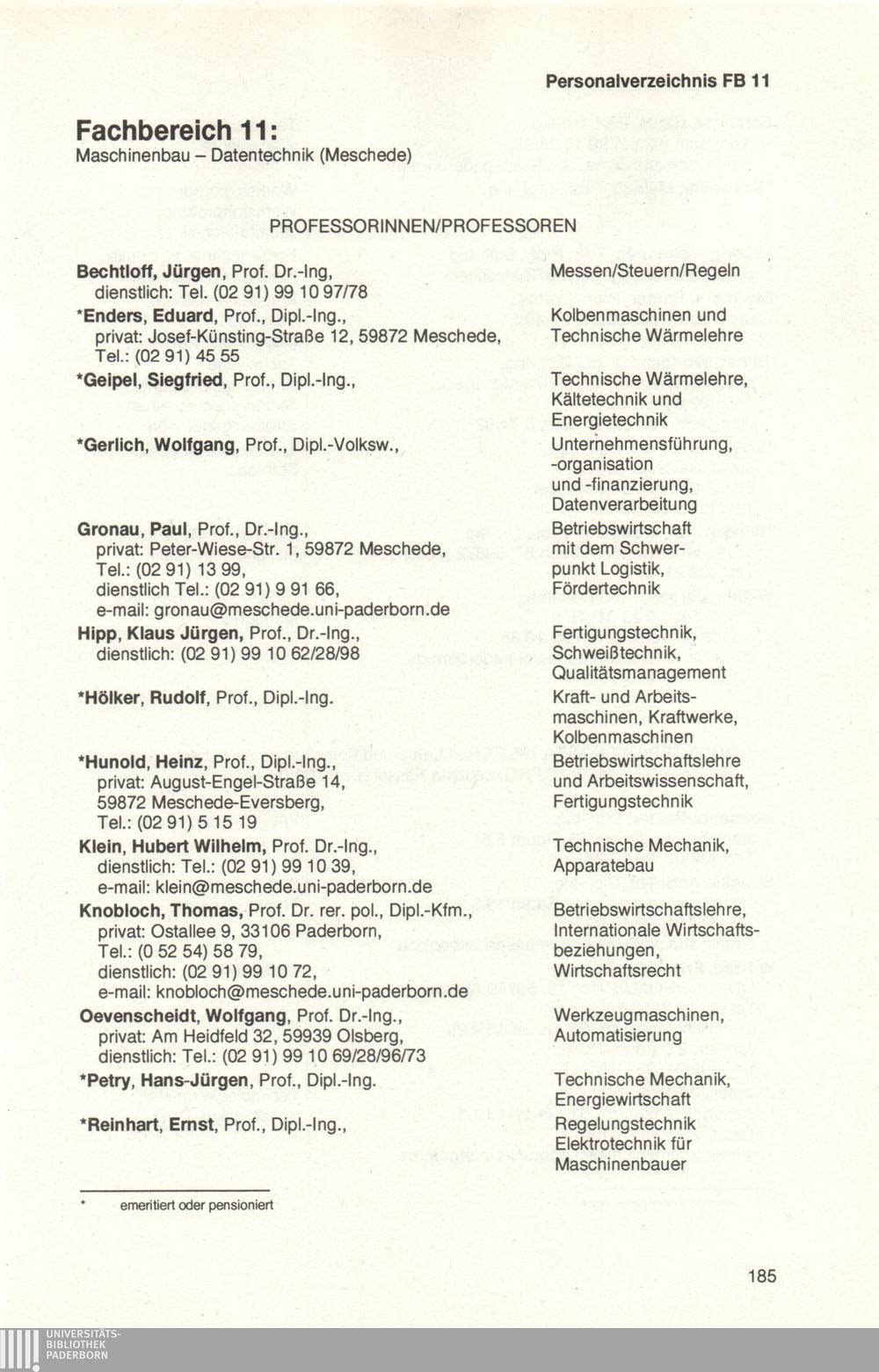 Personal- und Vorlesungsverzeichnis für die Universität Paderborn