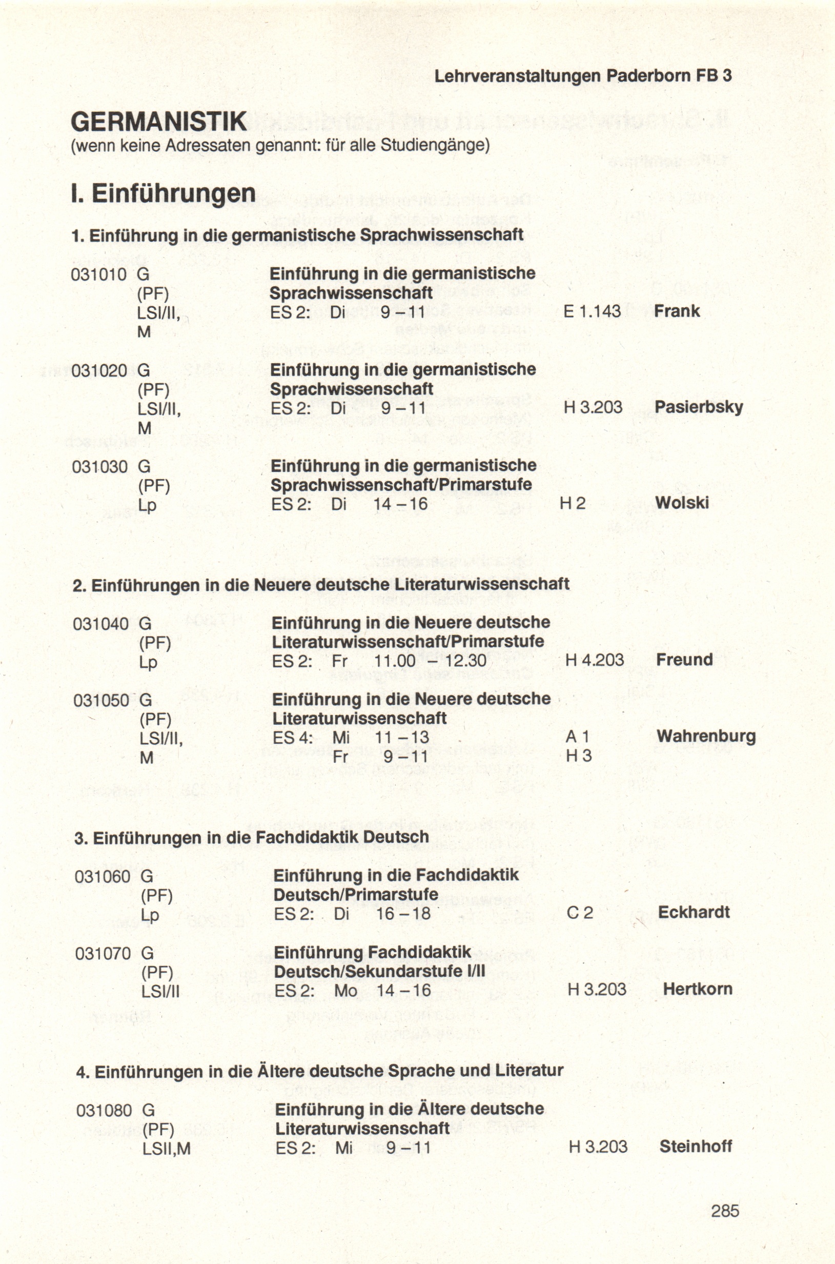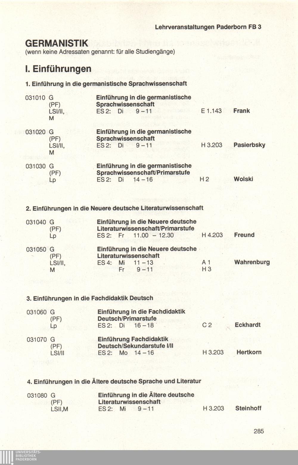 Personal- und Vorlesungsverzeichnis für die Universität Paderborn