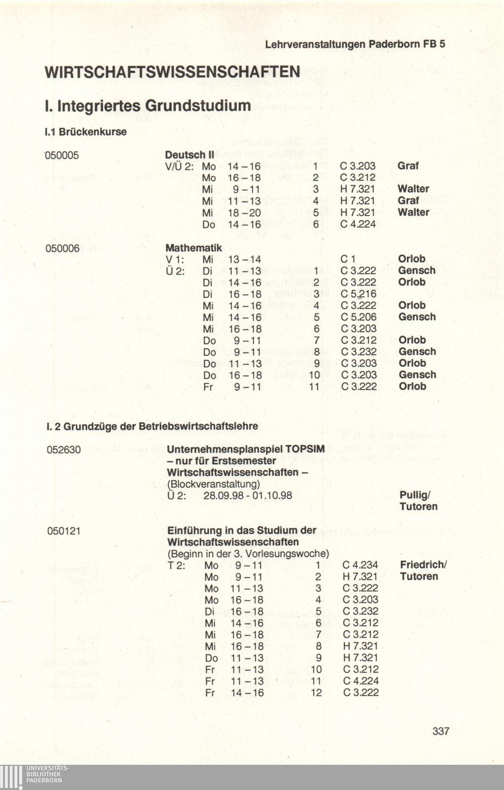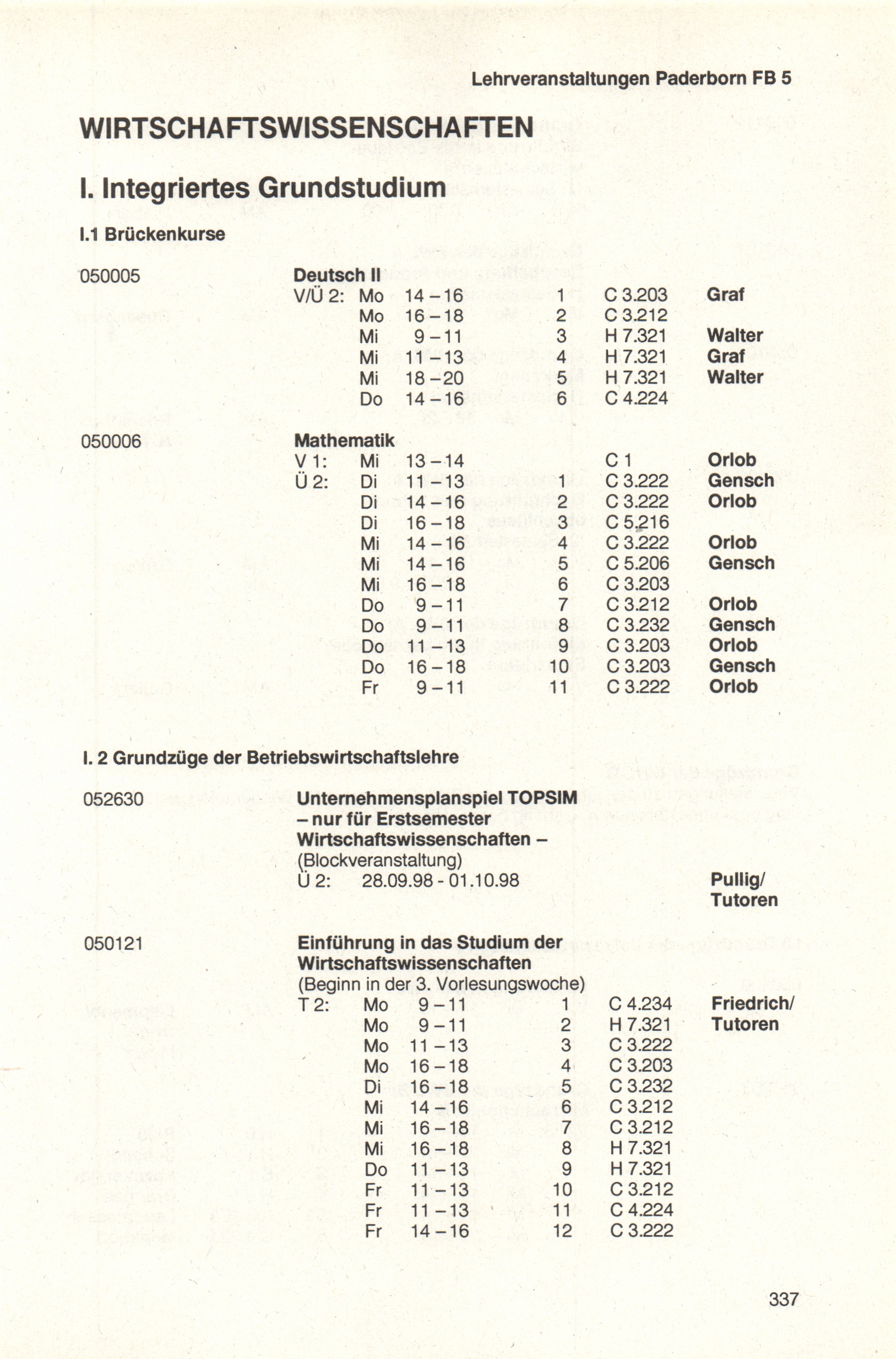 Personal- und Vorlesungsverzeichnis für die Universität Paderborn