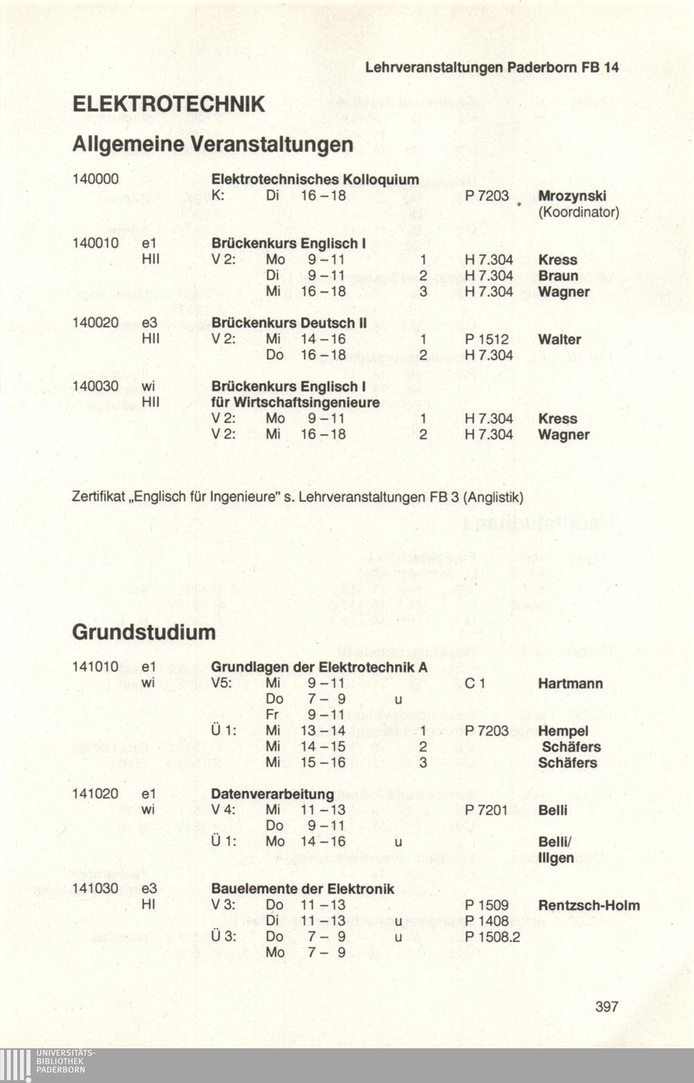 Fachbereich 14: Elektrotechnik