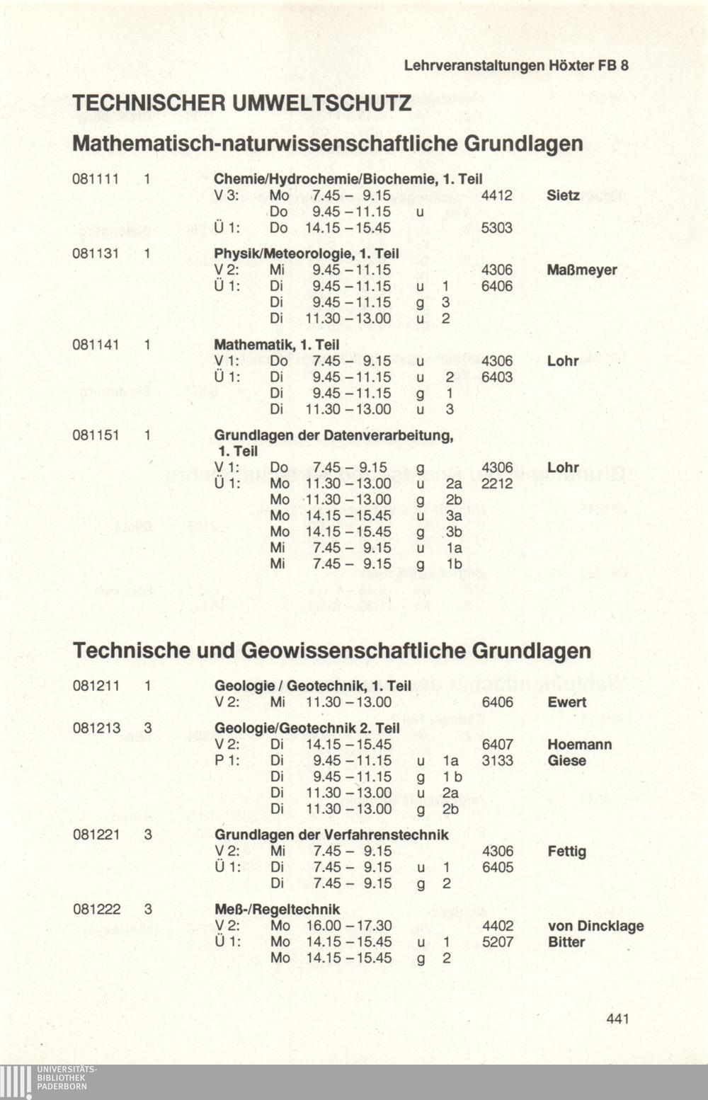 Personal- und Vorlesungsverzeichnis für die Universität Paderborn