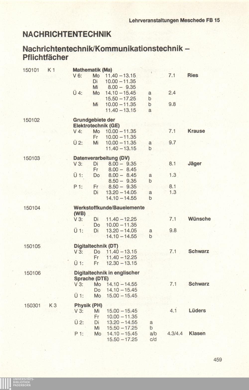 Personal- und Vorlesungsverzeichnis für die Universität Paderborn