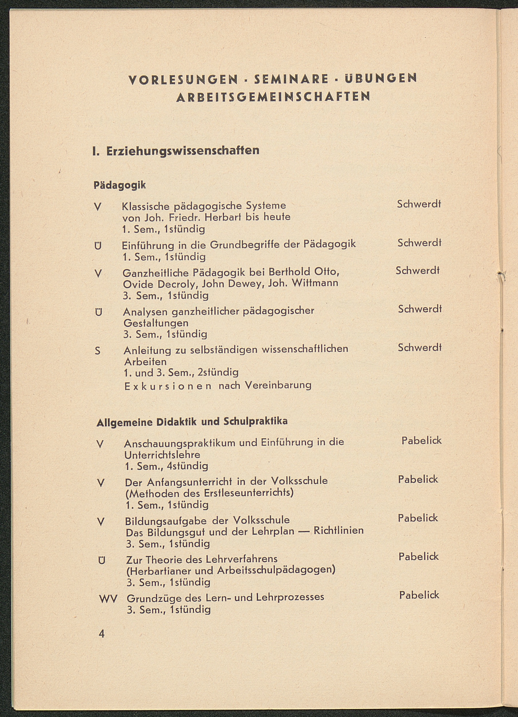 Vorlesungen, Seminare, Übungen, Arbeitsgemeinschaften
