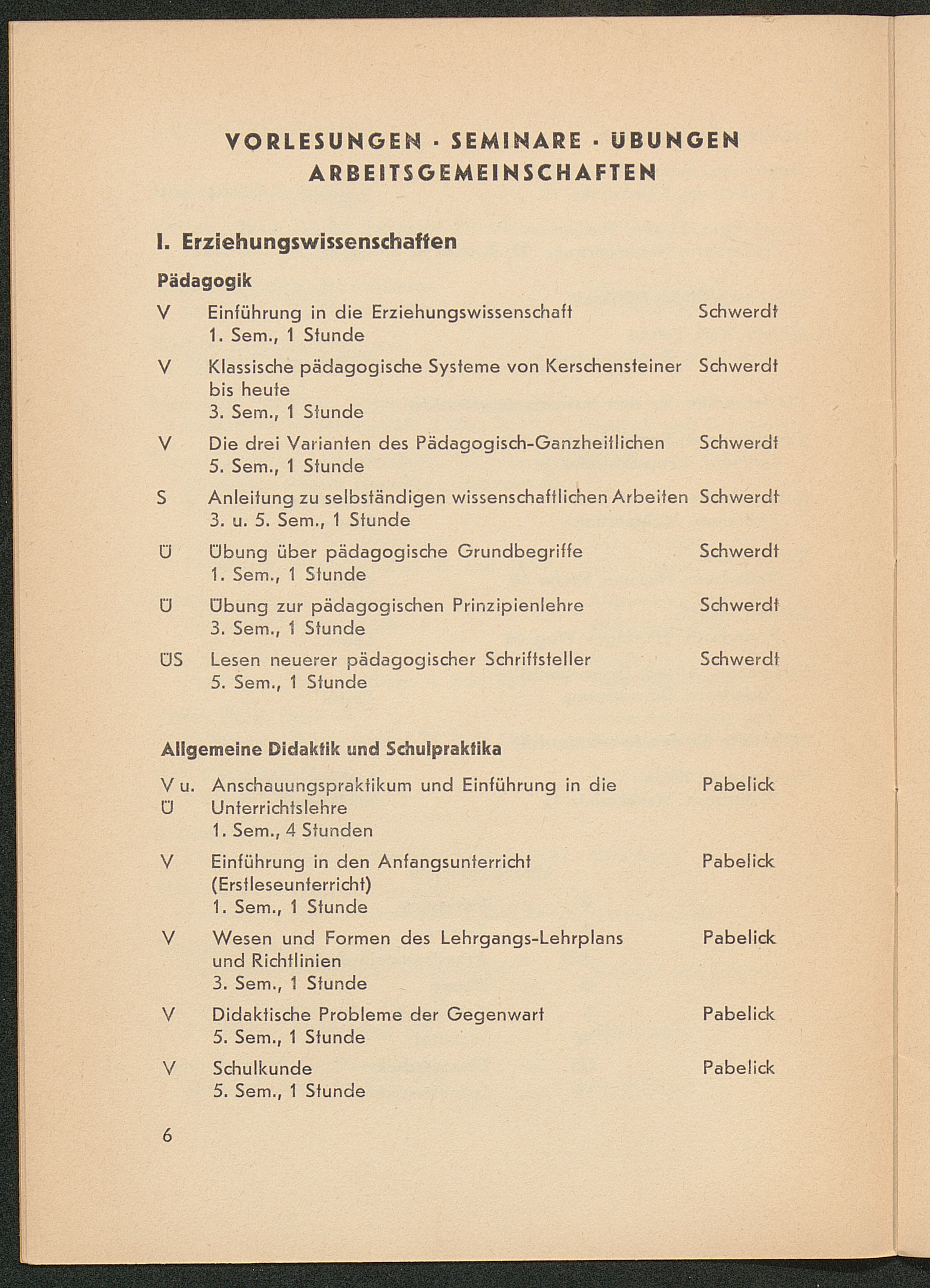 Vorlesungen, Seminare, Übungen, Arbeitsgemeinschaften