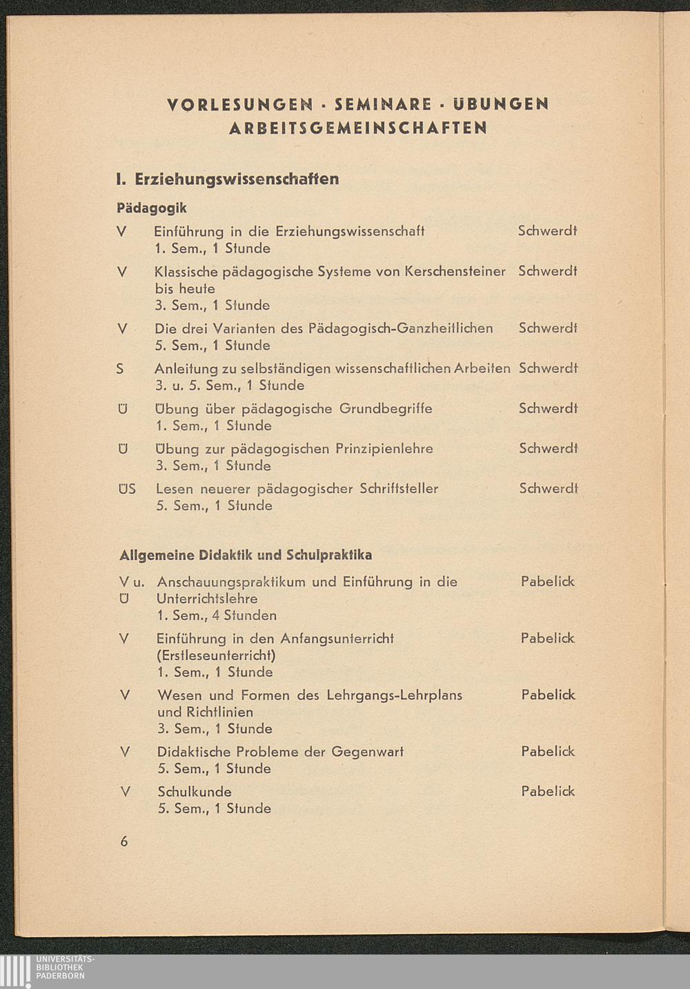 Vorlesungsverzeichnis