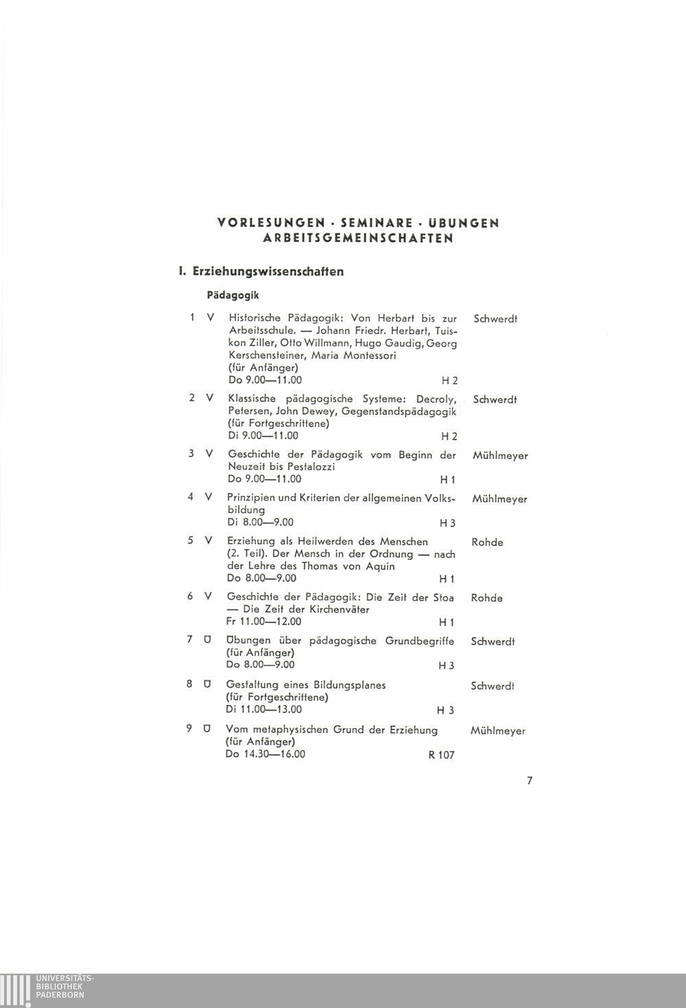 Vorlesungsverzeichnis