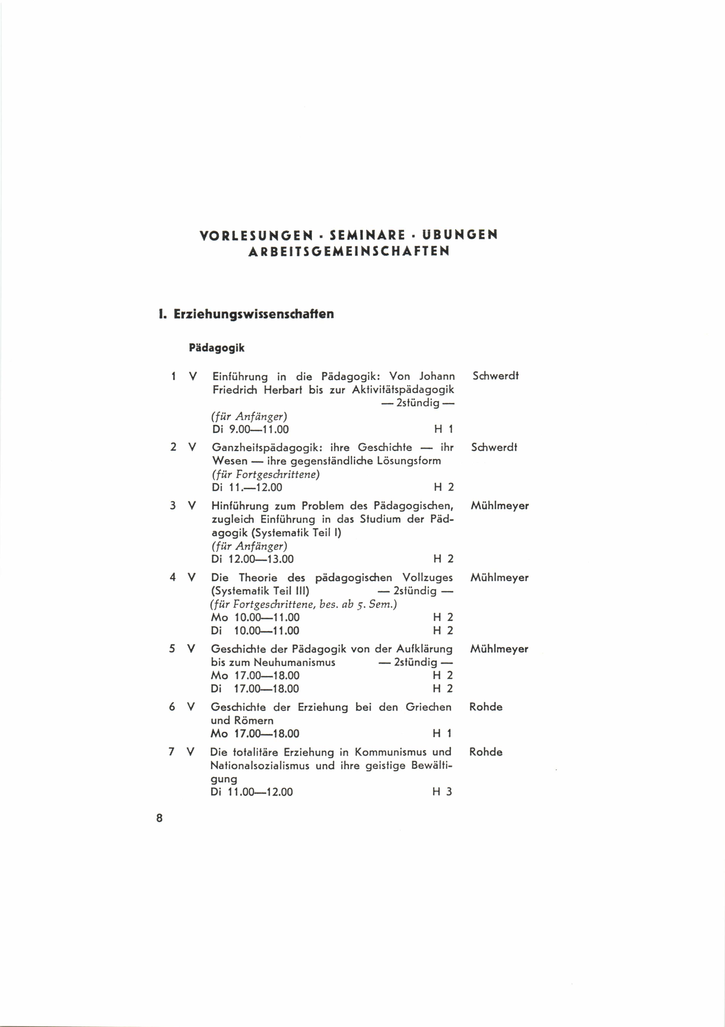 Vorlesungen, Seminare, Übungen, Arbeitsgemeinschaften