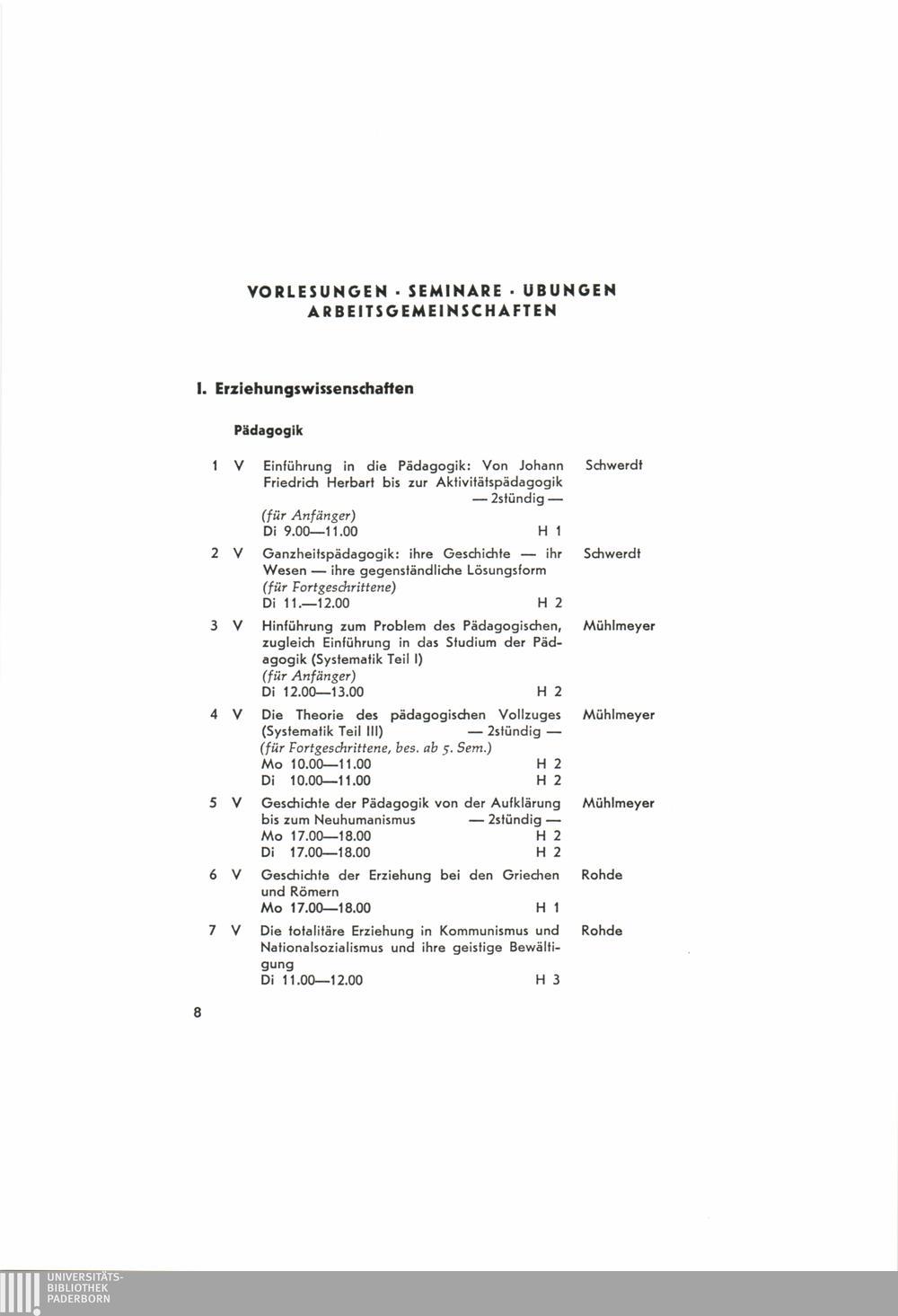 Vorlesungsverzeichnis