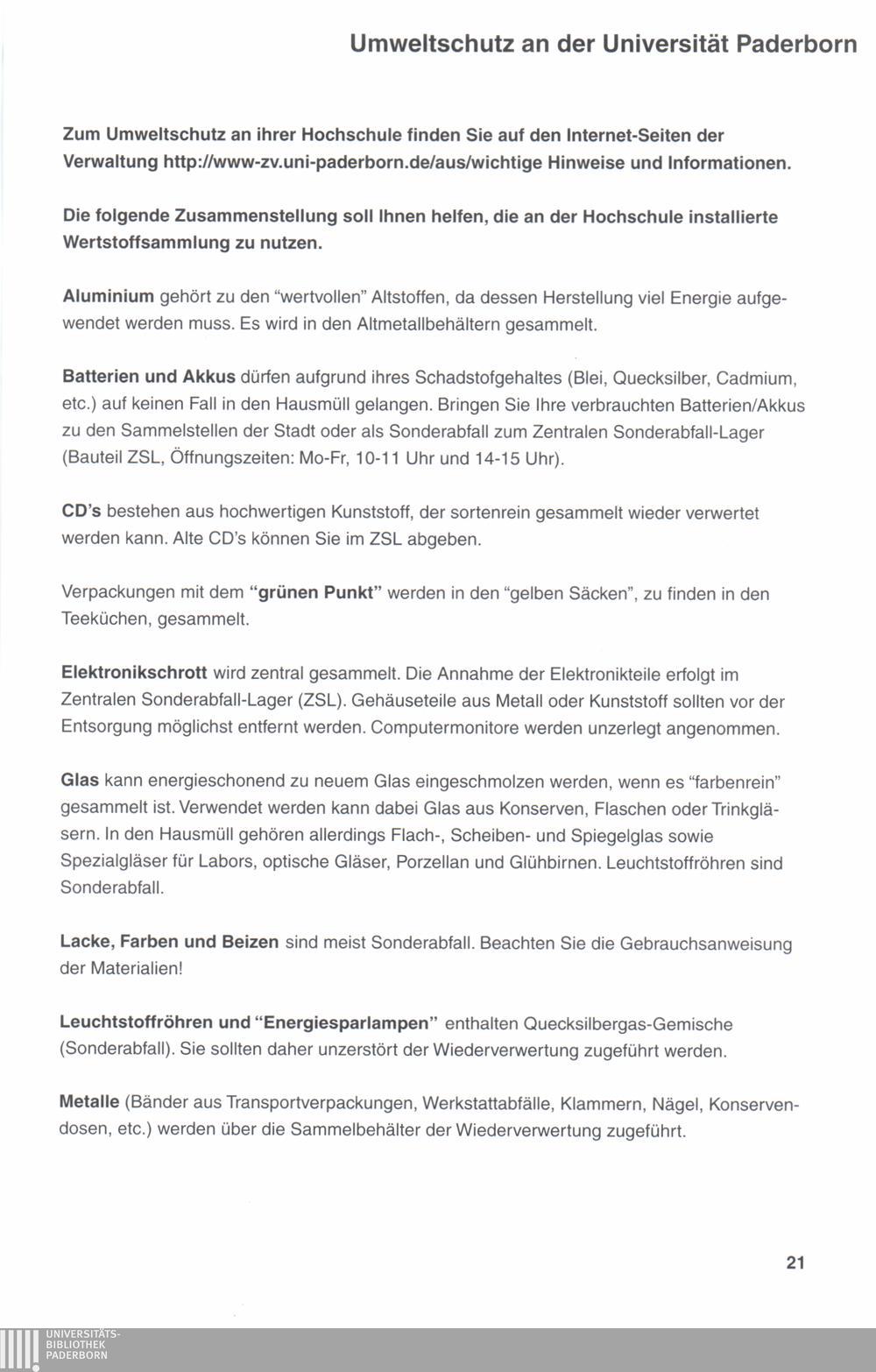 Umweltschutz an der Uni Paderborn