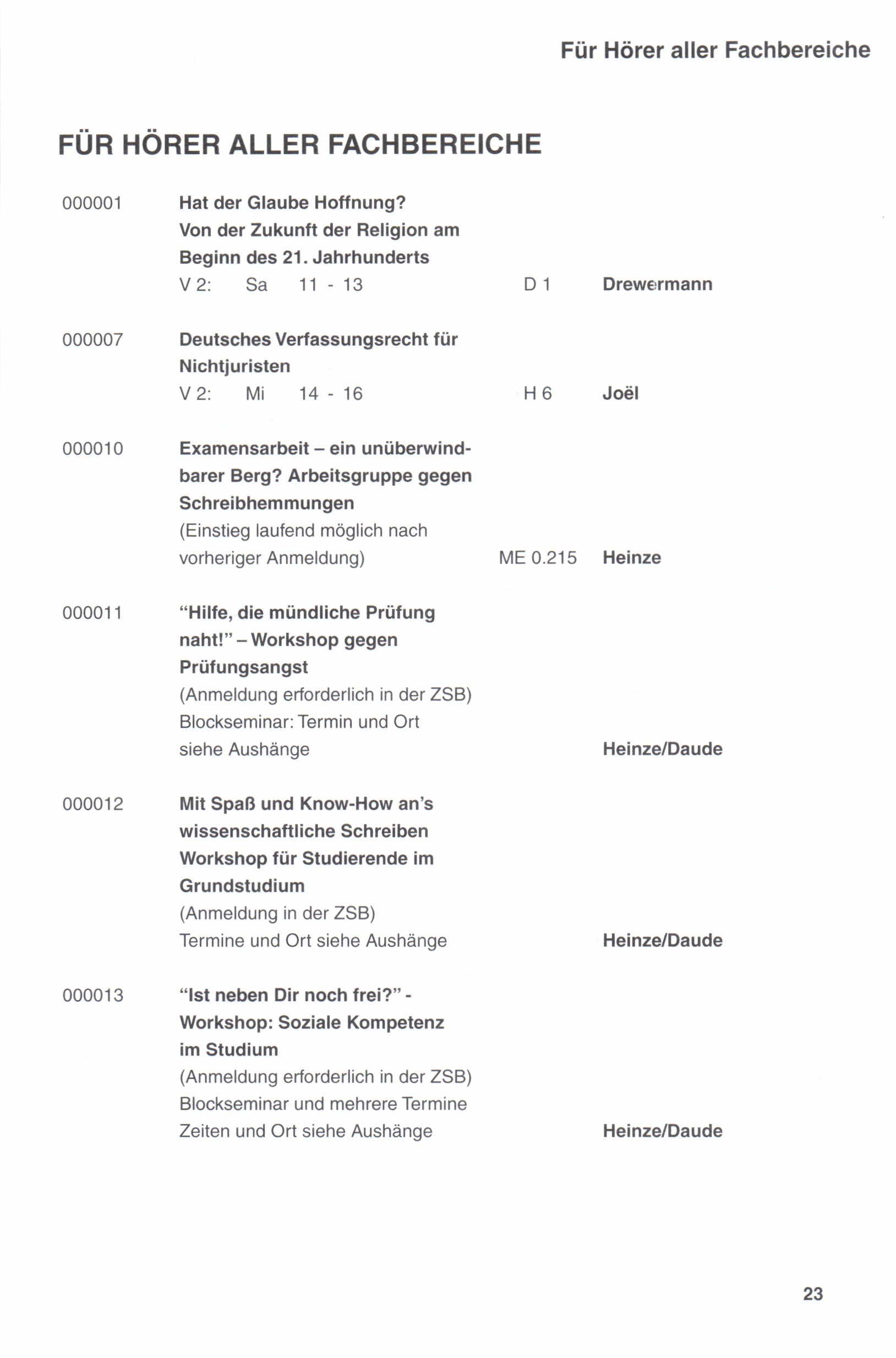 Für Hörer aller Fachbereiche