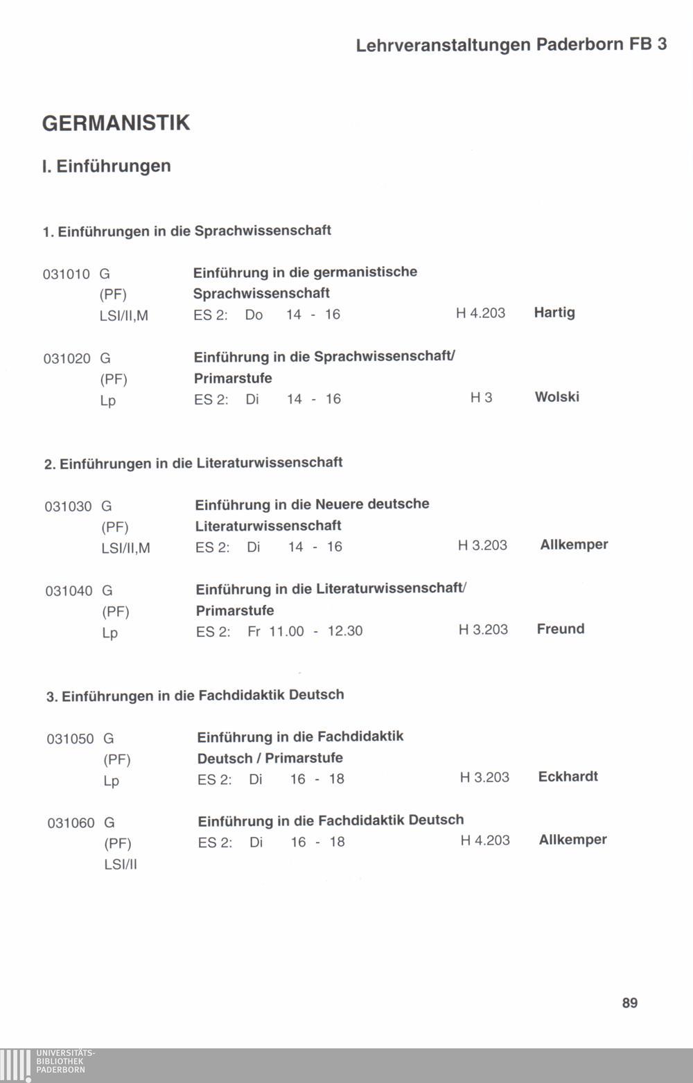 Personal- und Vorlesungsverzeichnis für die Universität Paderborn