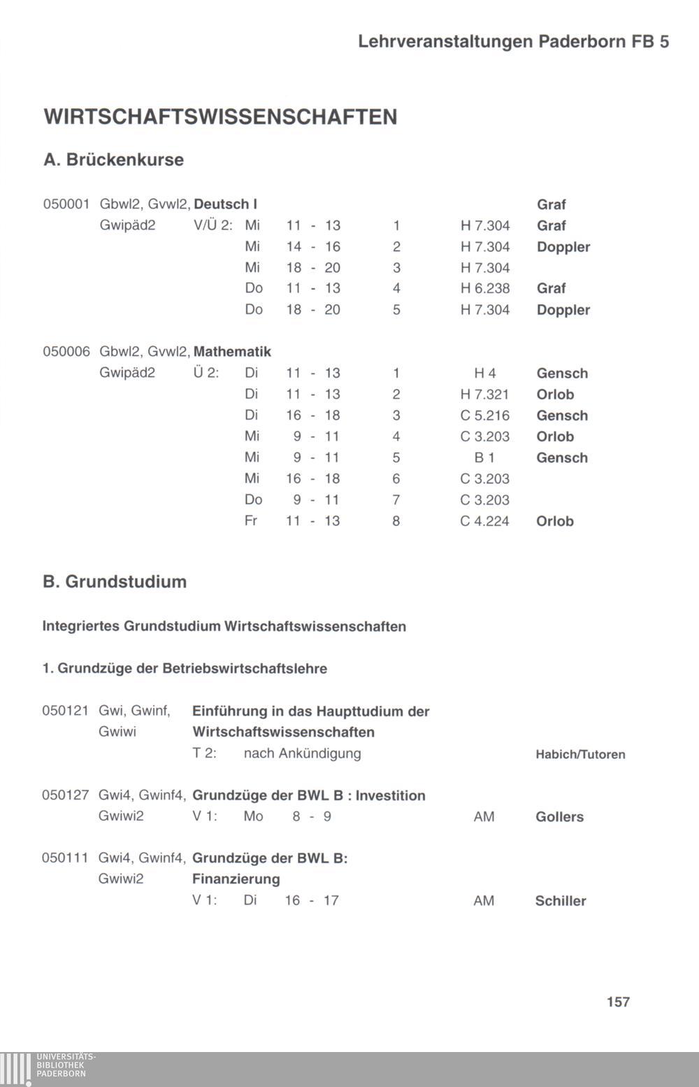 Personal- und Vorlesungsverzeichnis für die Universität Paderborn