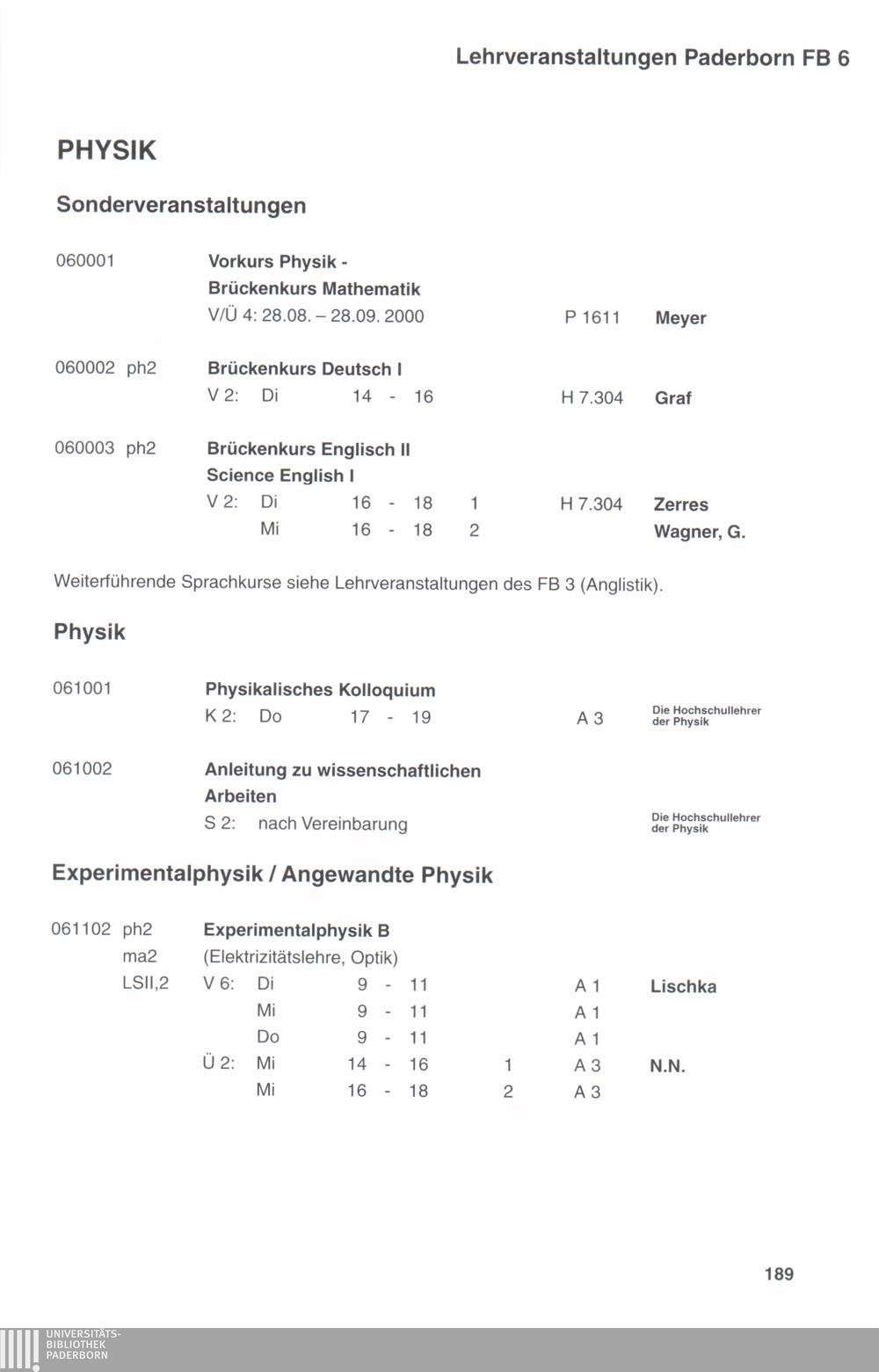 Personal- und Vorlesungsverzeichnis für die Universität Paderborn