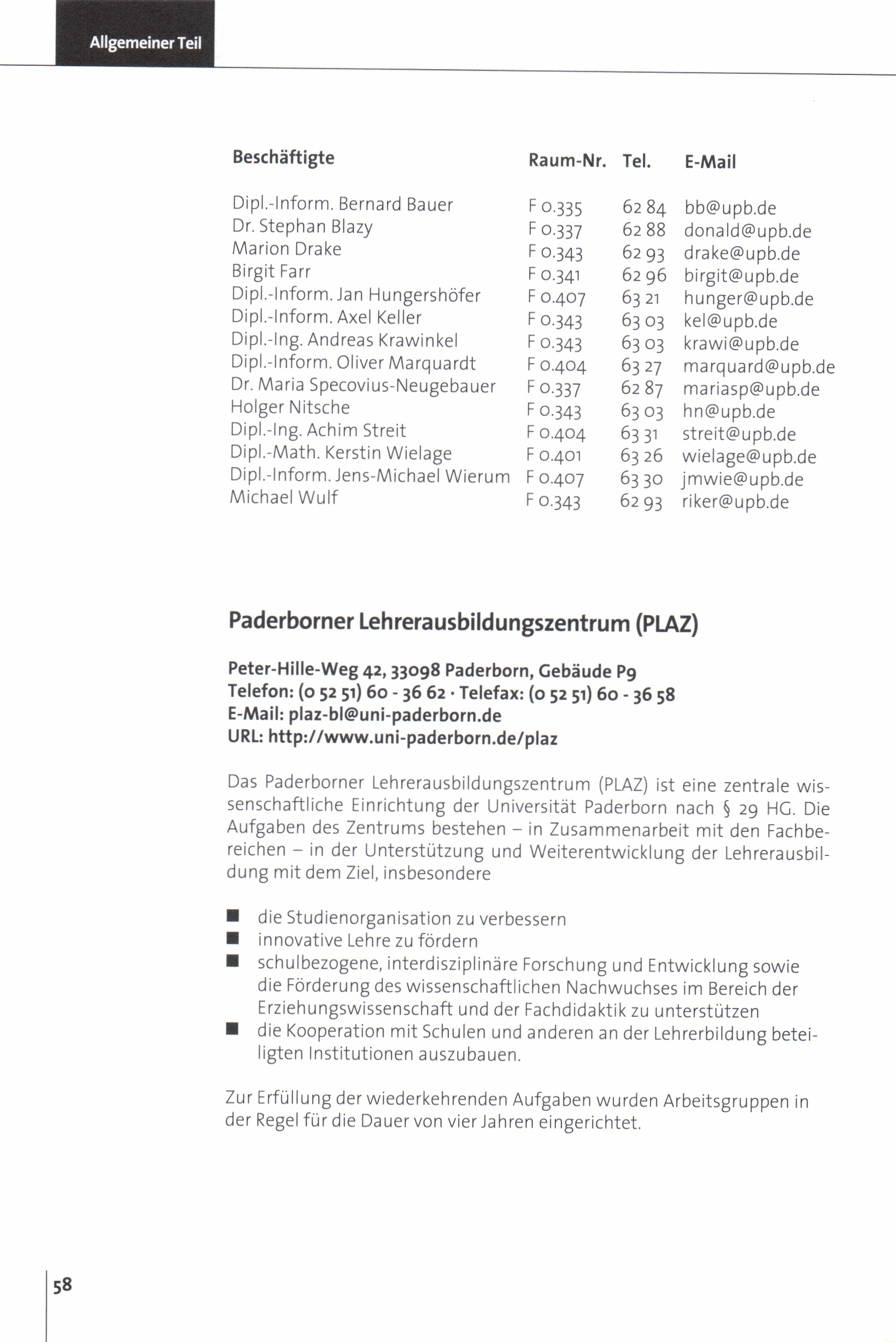 Personal- und Vorlesungsverzeichnis für die Universität Paderborn