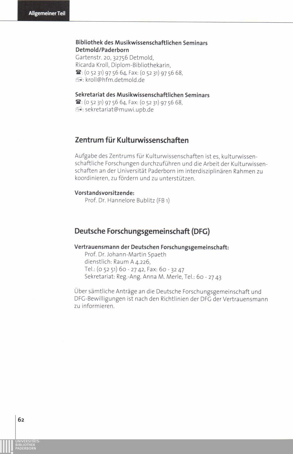 Personal- und Vorlesungsverzeichnis für die Universität Paderborn