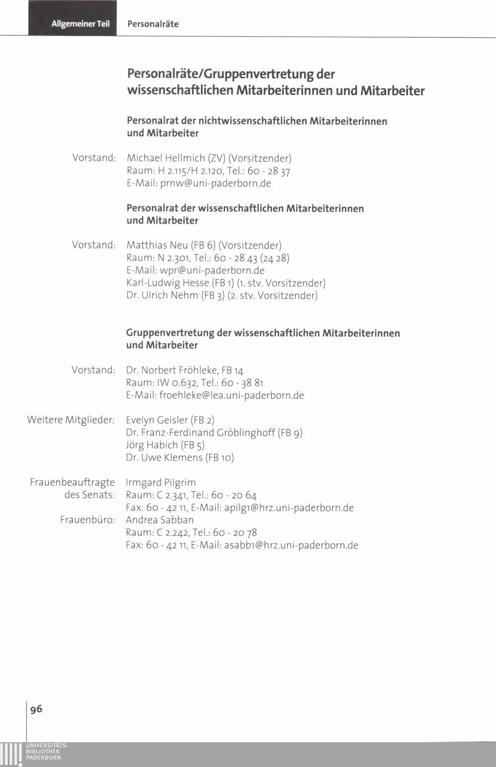 Personal- und Vorlesungsverzeichnis für die Universität Paderborn