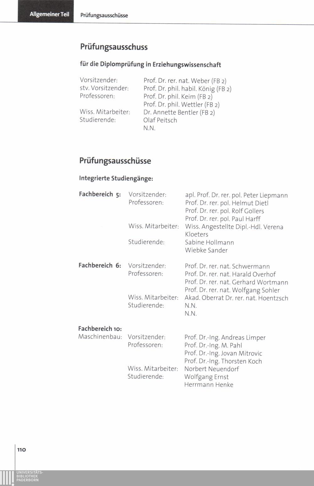 Personal- und Vorlesungsverzeichnis für die Universität Paderborn