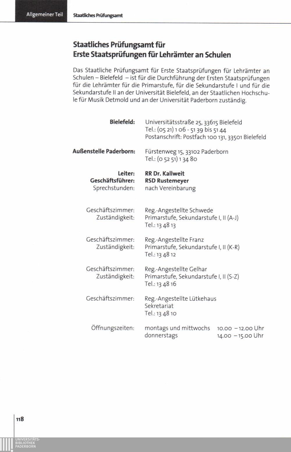 Personal- und Vorlesungsverzeichnis für die Universität Paderborn