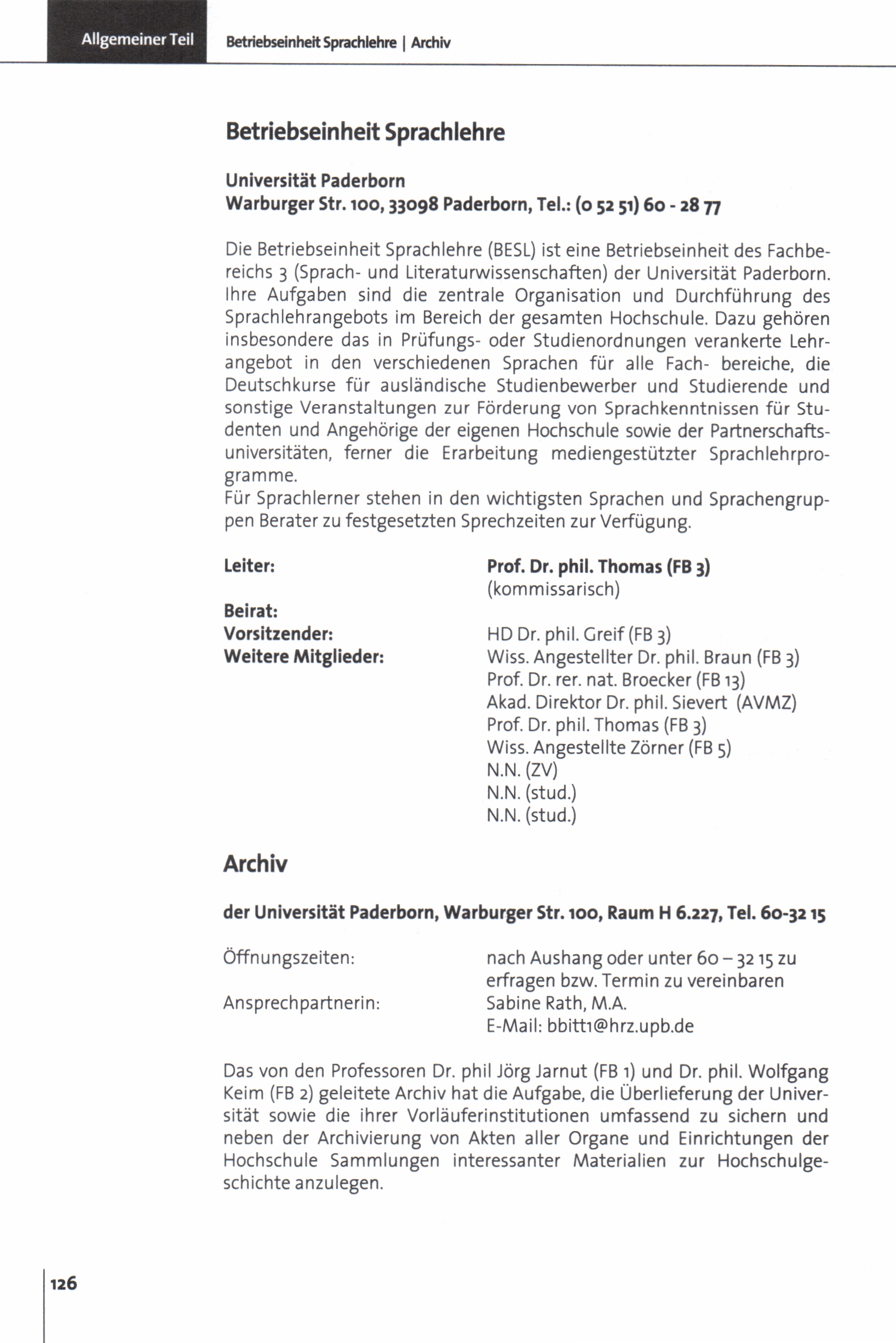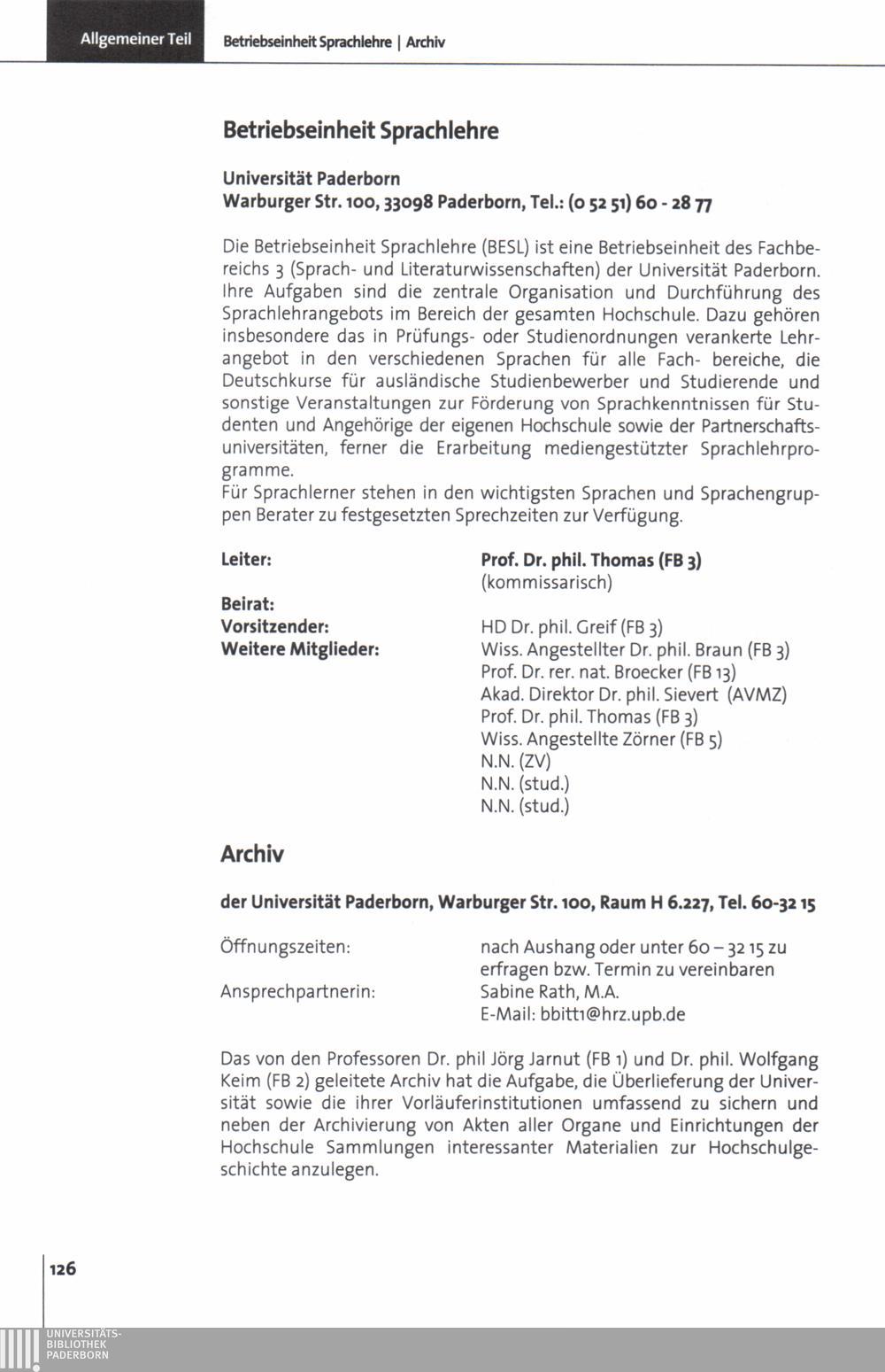 Personal- und Vorlesungsverzeichnis für die Universität Paderborn