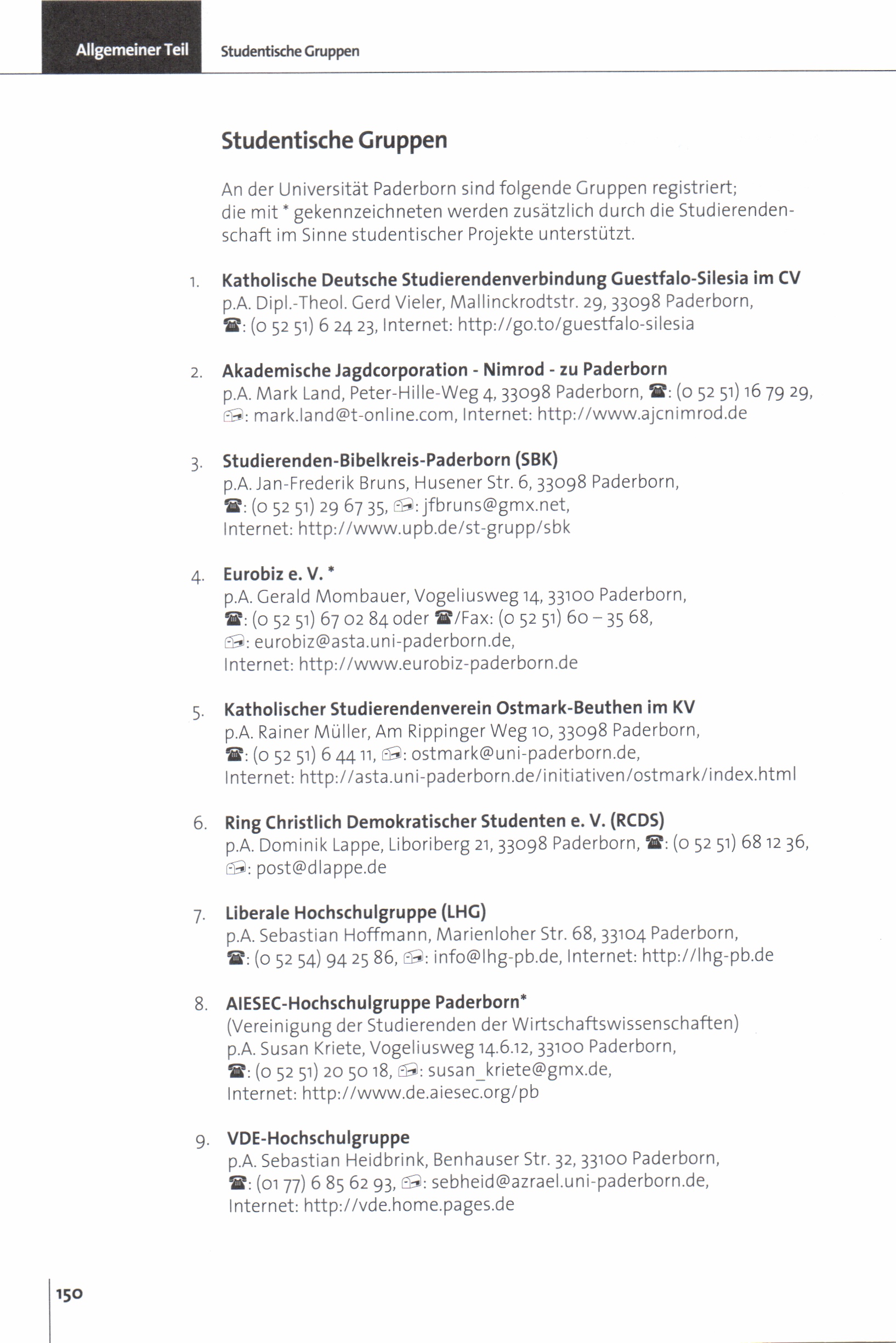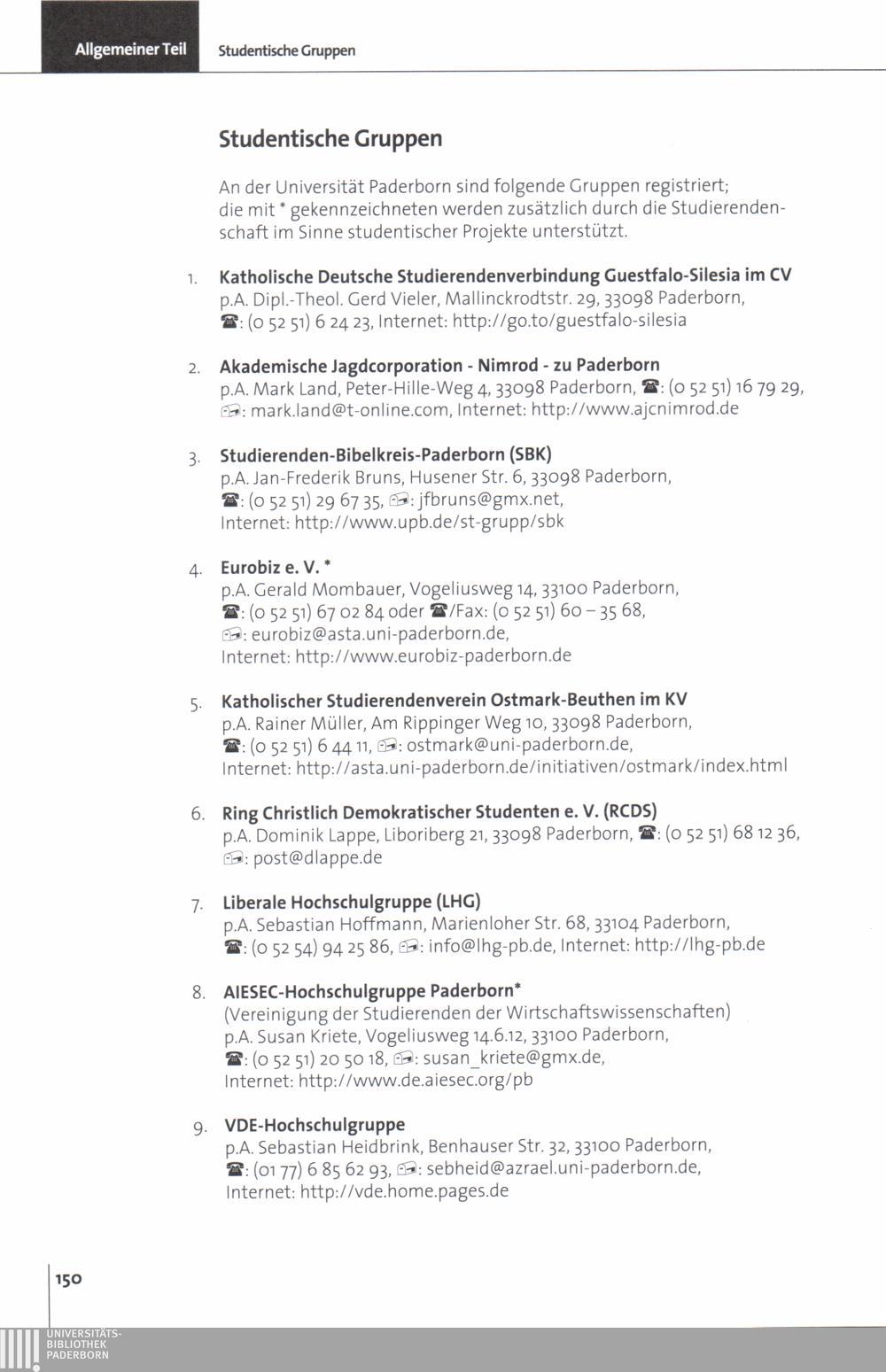 Personal- und Vorlesungsverzeichnis für die Universität Paderborn