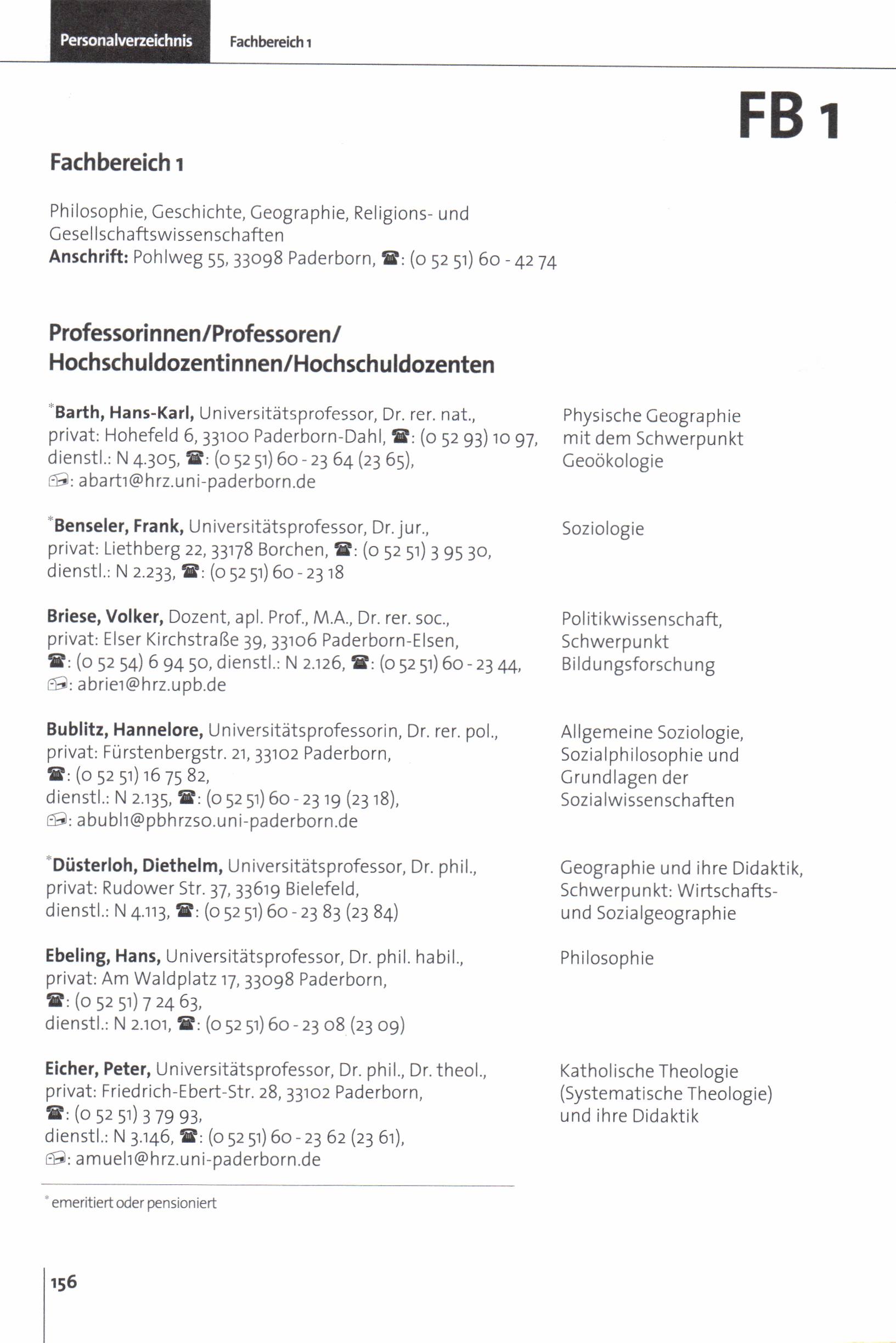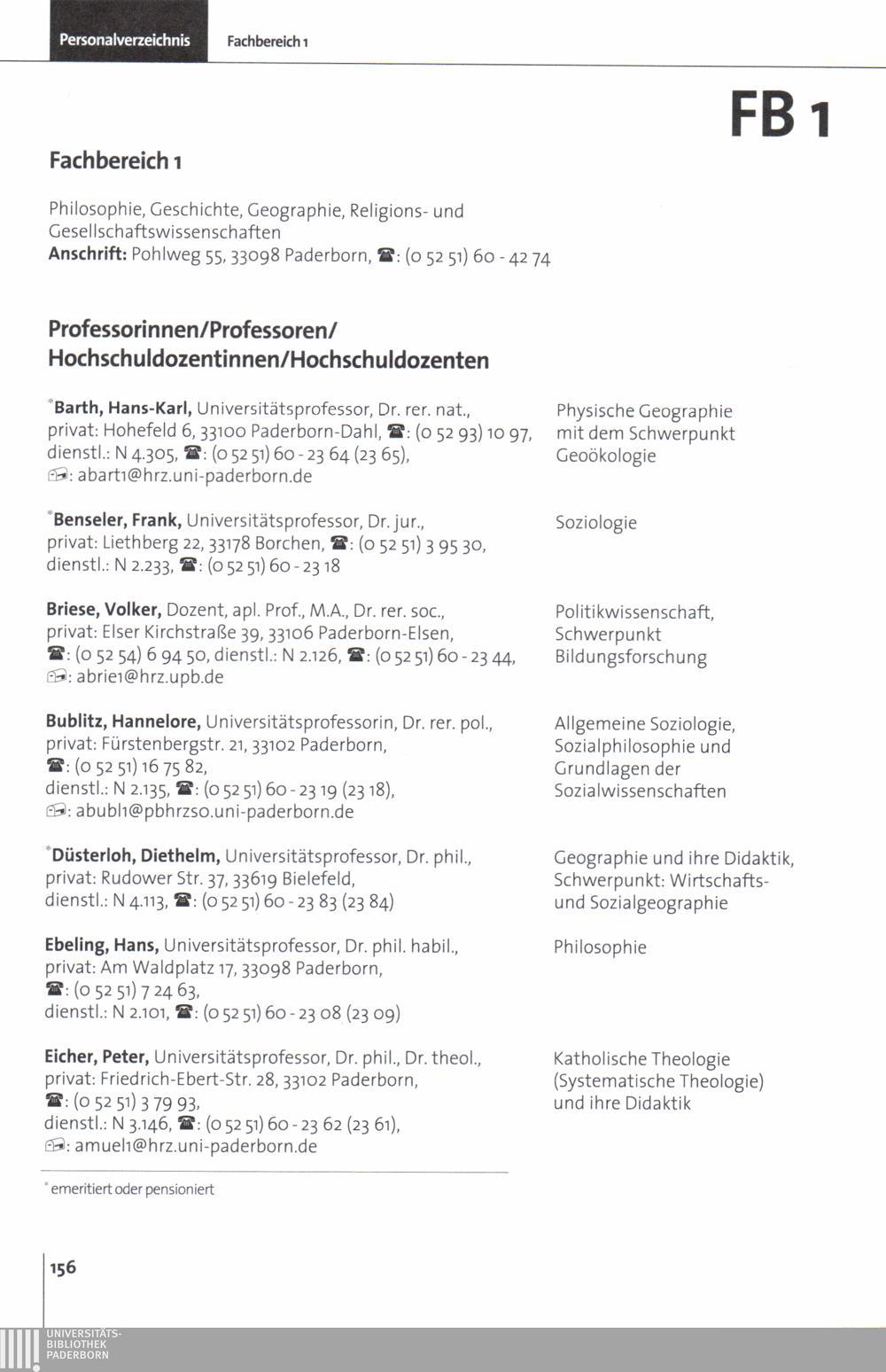 Personal- und Vorlesungsverzeichnis für die Universität Paderborn