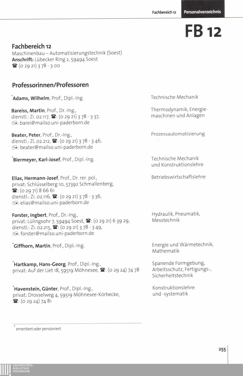 Personal- und Vorlesungsverzeichnis für die Universität Paderborn
