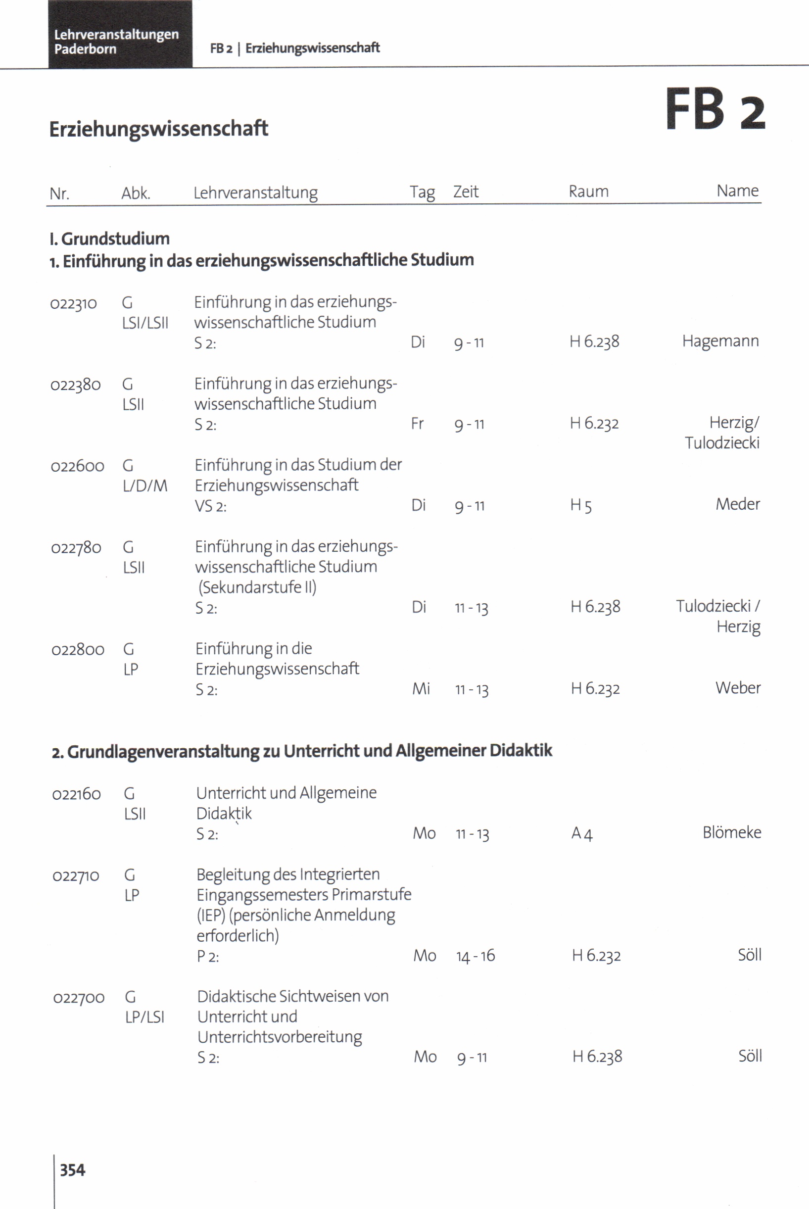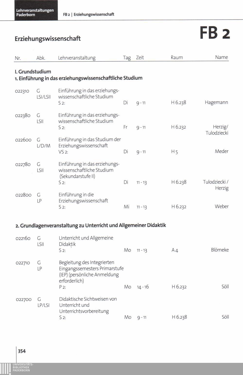 Personal- und Vorlesungsverzeichnis für die Universität Paderborn