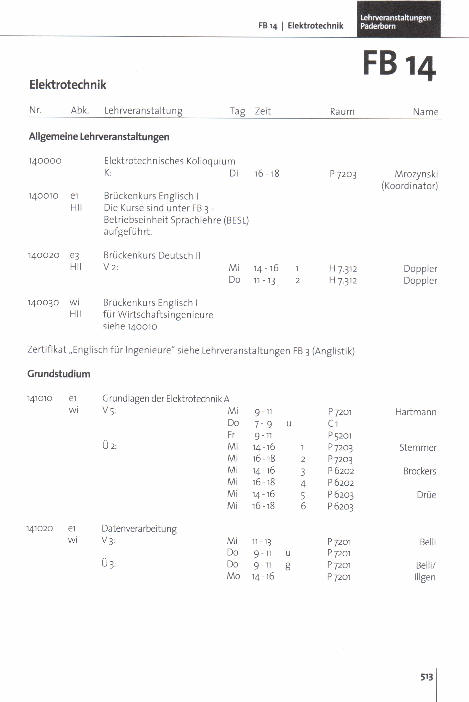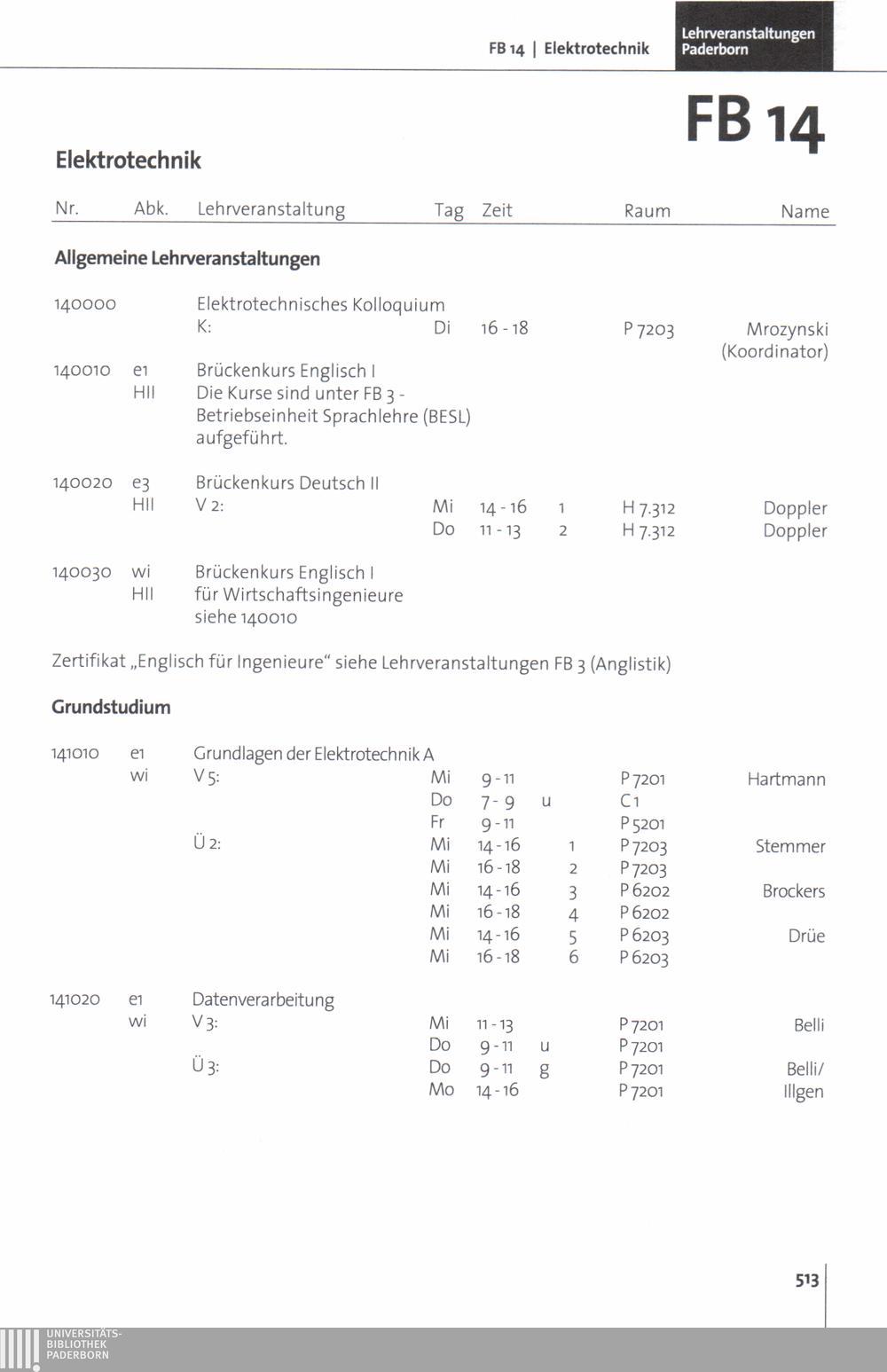 Personal- und Vorlesungsverzeichnis für die Universität Paderborn
