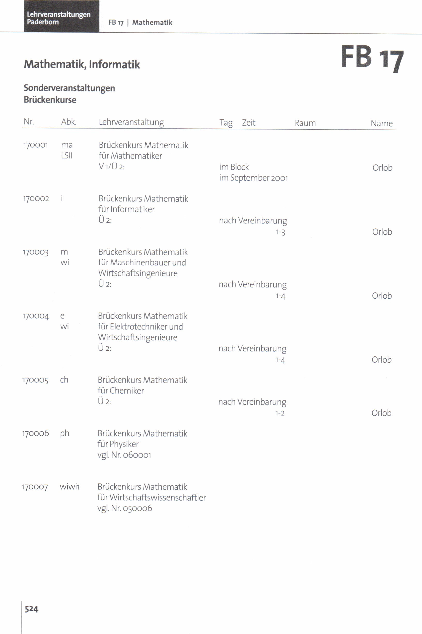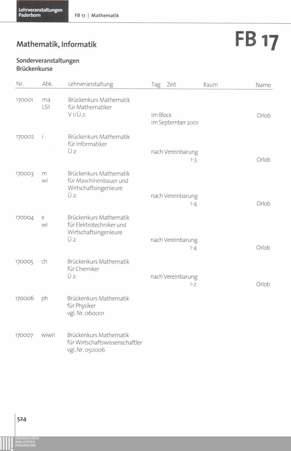 Personal- und Vorlesungsverzeichnis für die Universität Paderborn