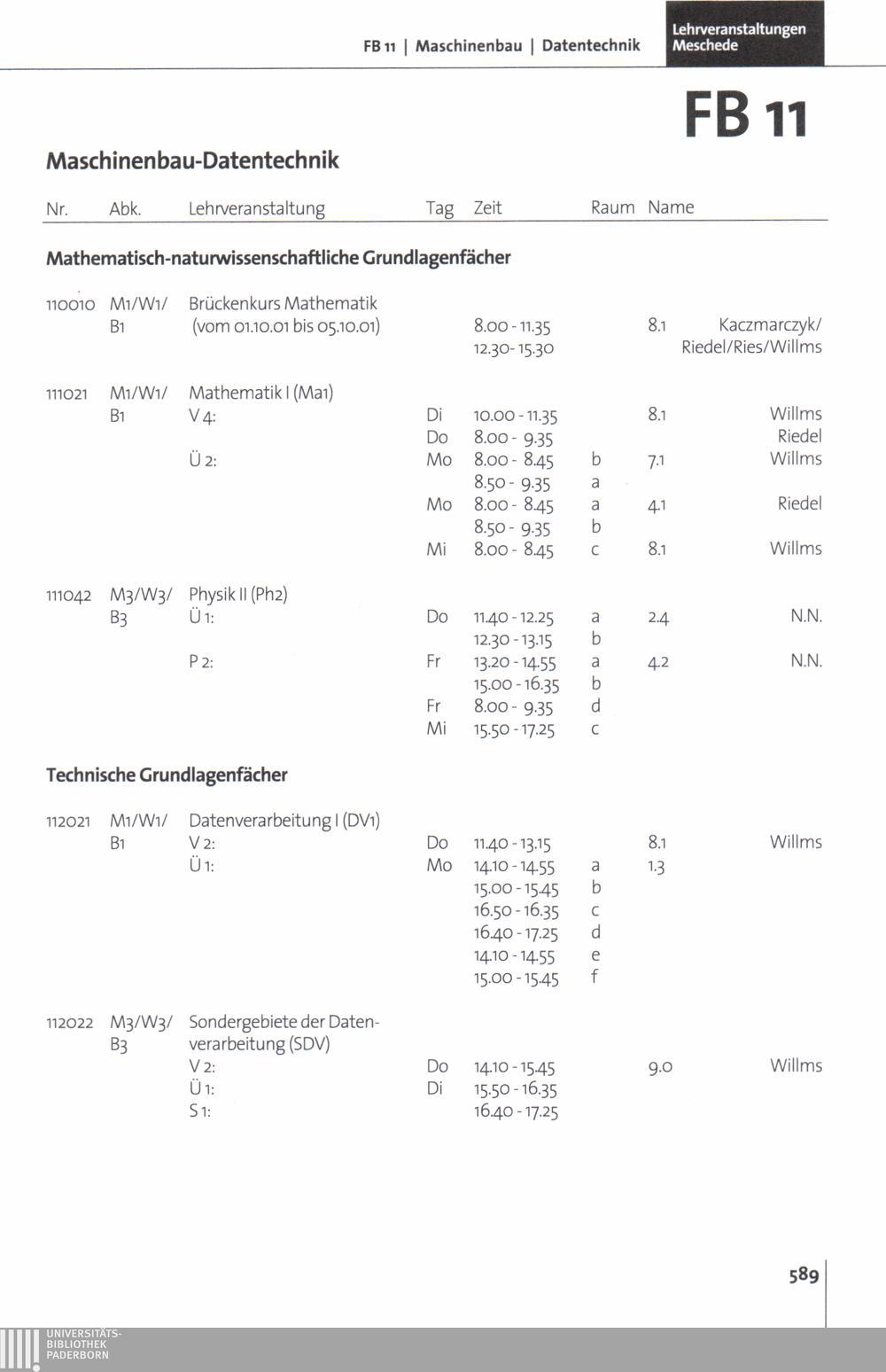 Personal- und Vorlesungsverzeichnis für die Universität Paderborn