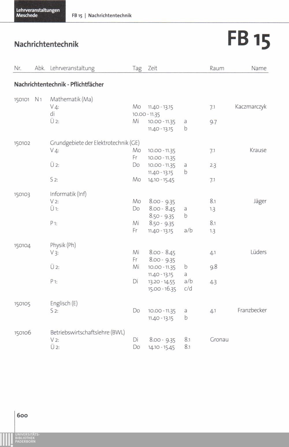 FB 15: Nachrichtentechnik