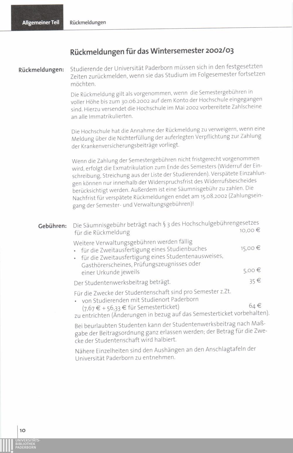 Personal- und Vorlesungsverzeichnis für die Universität Paderborn