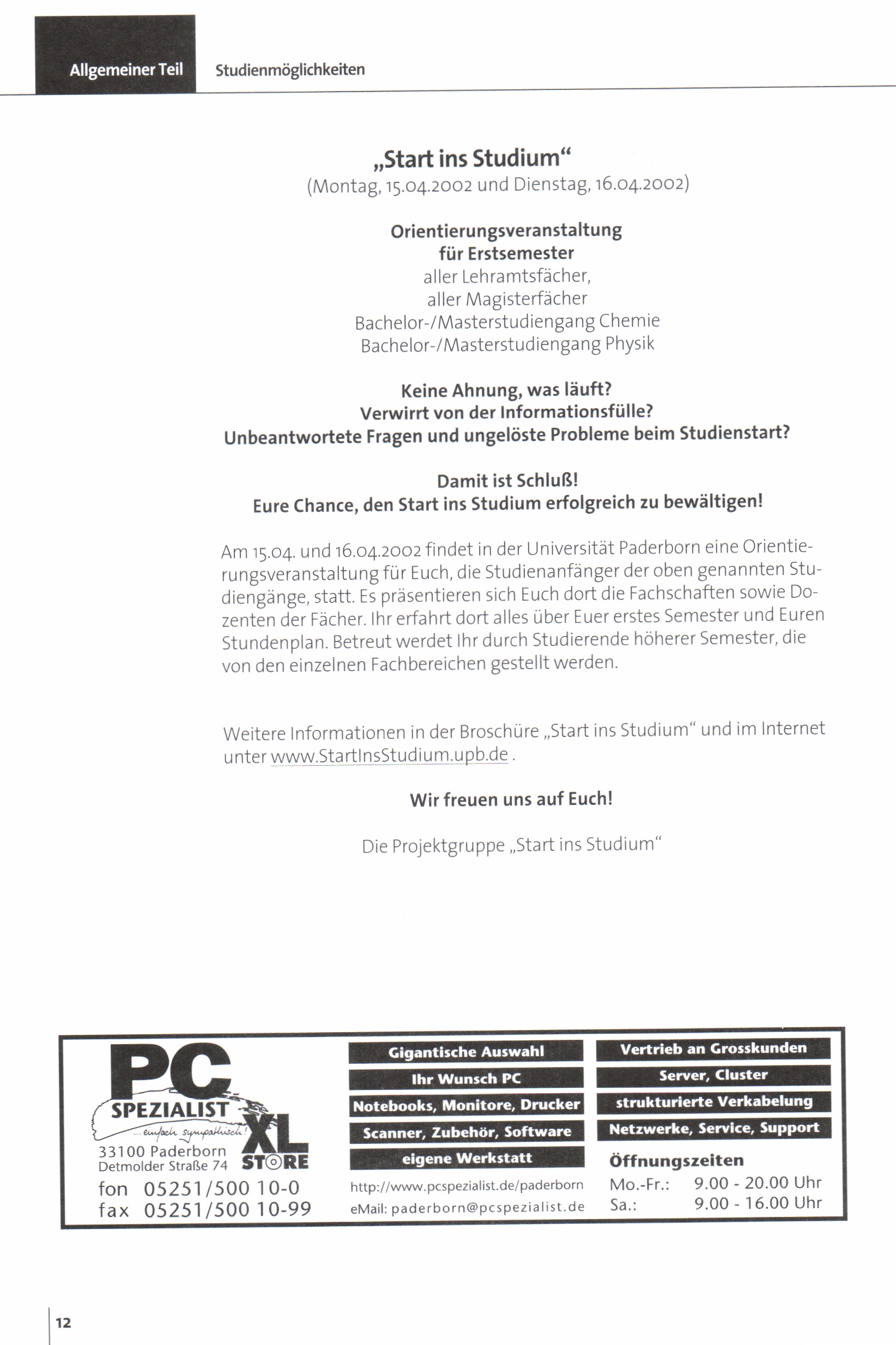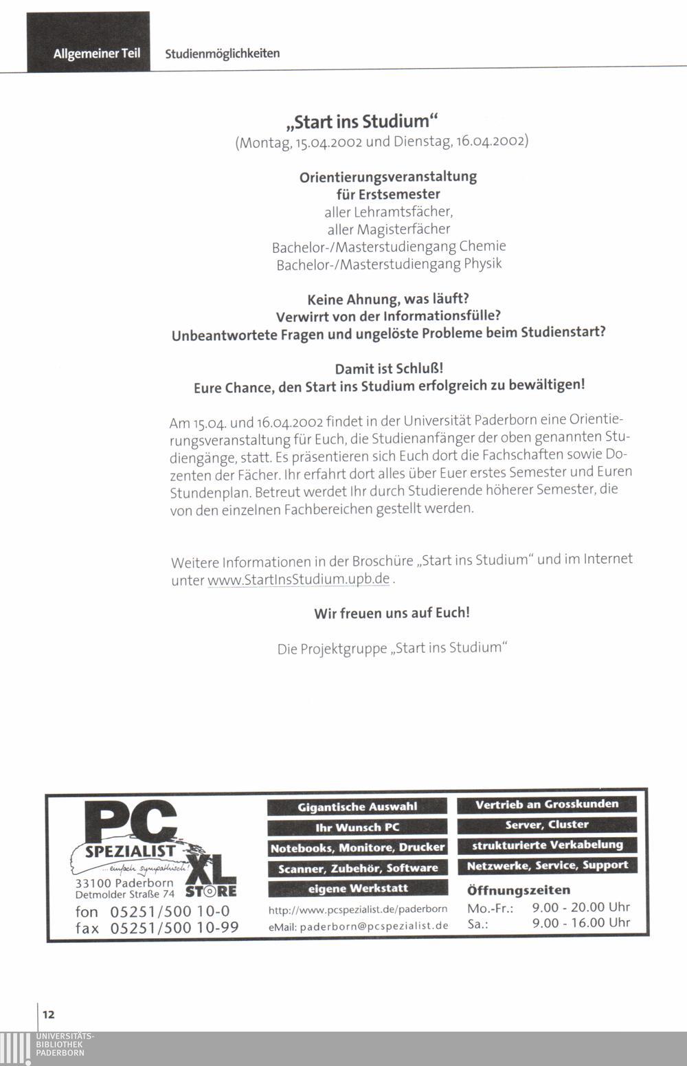 Personal- und Vorlesungsverzeichnis für die Universität Paderborn