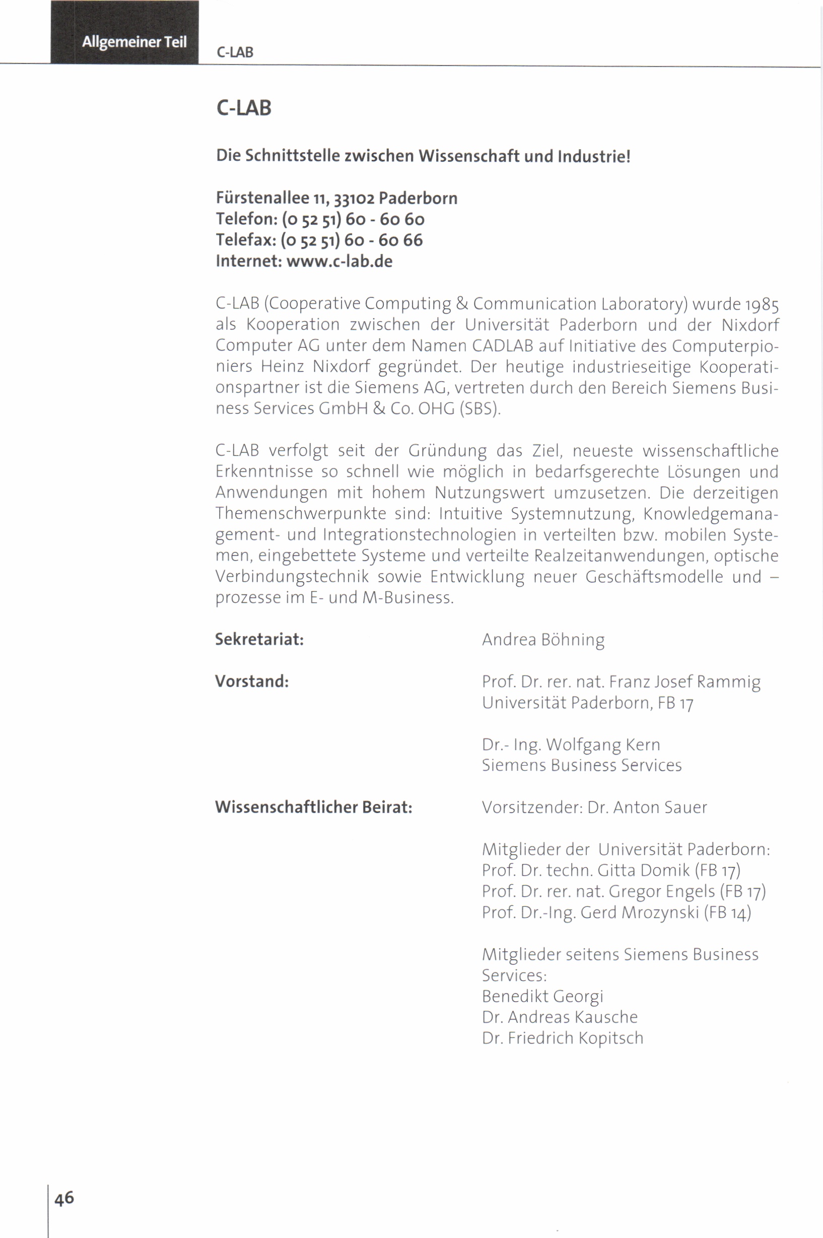 Personal- und Vorlesungsverzeichnis für die Universität Paderborn