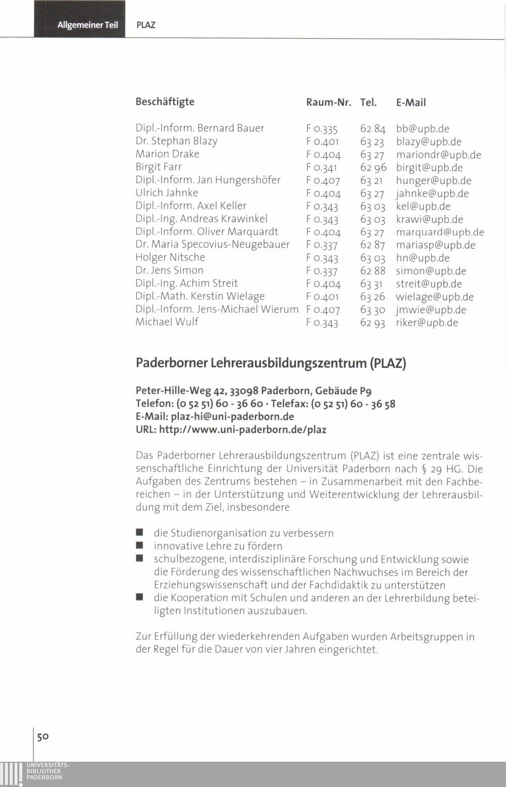 Personal- und Vorlesungsverzeichnis für die Universität Paderborn